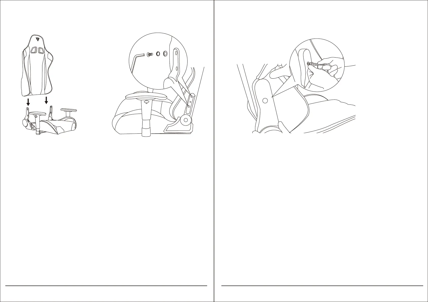 1. Przymocuj oparcie pleców do fotela.PL 2. Przymocuj dostarczonymi śrubami.