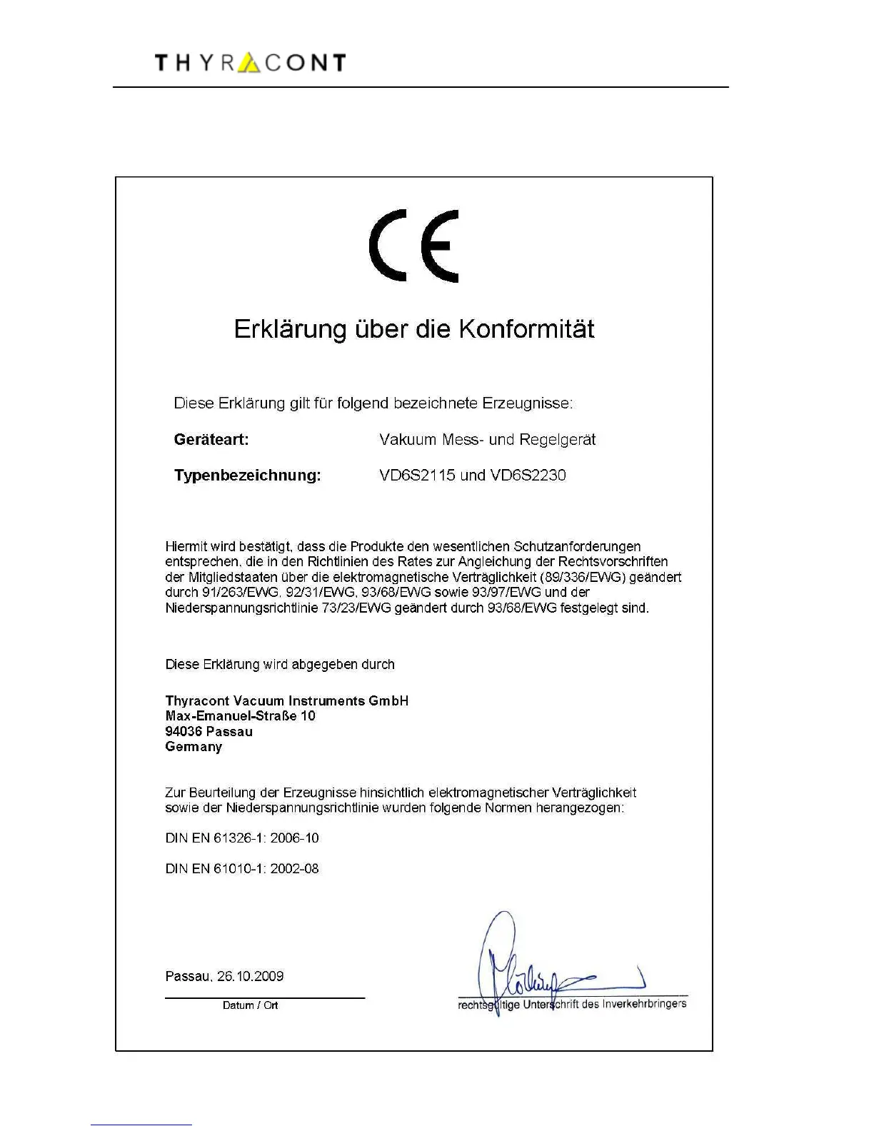 Thyracont VD6 - Konformitätserklärung
