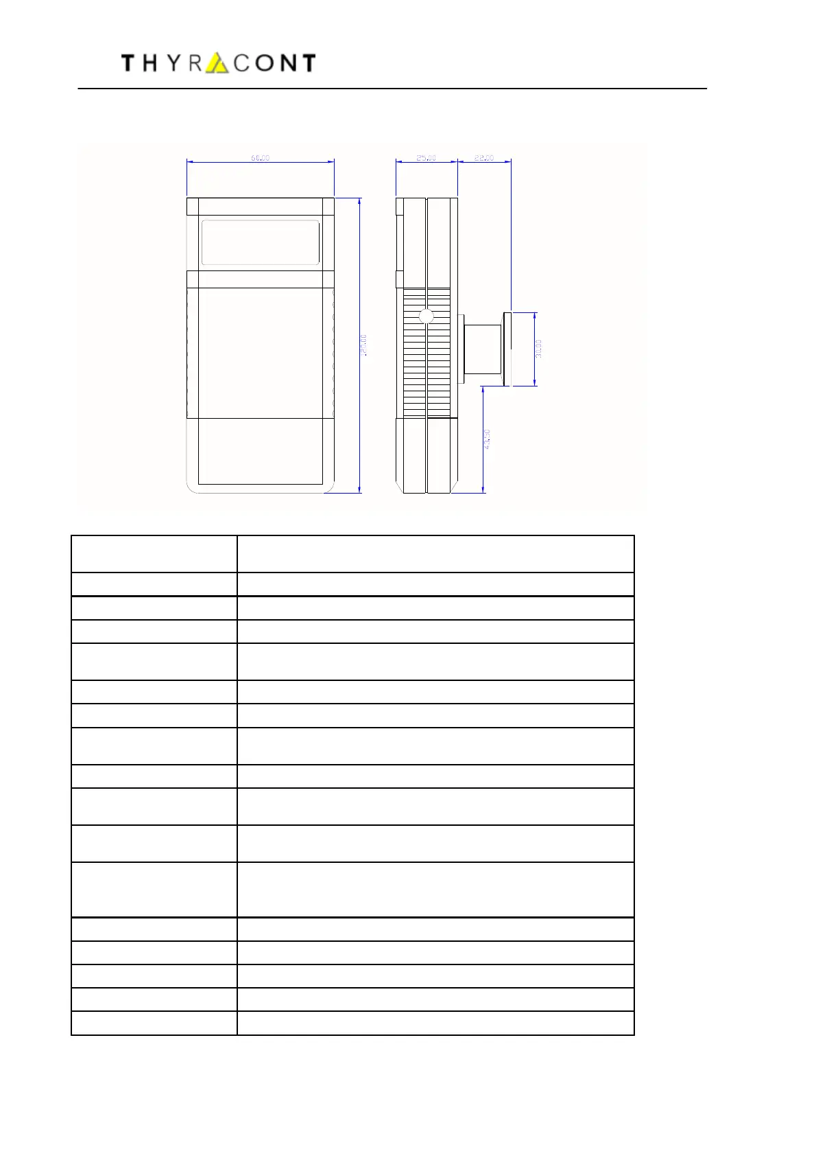 Dimensions 60 x 120 x 25 mm (without flange)