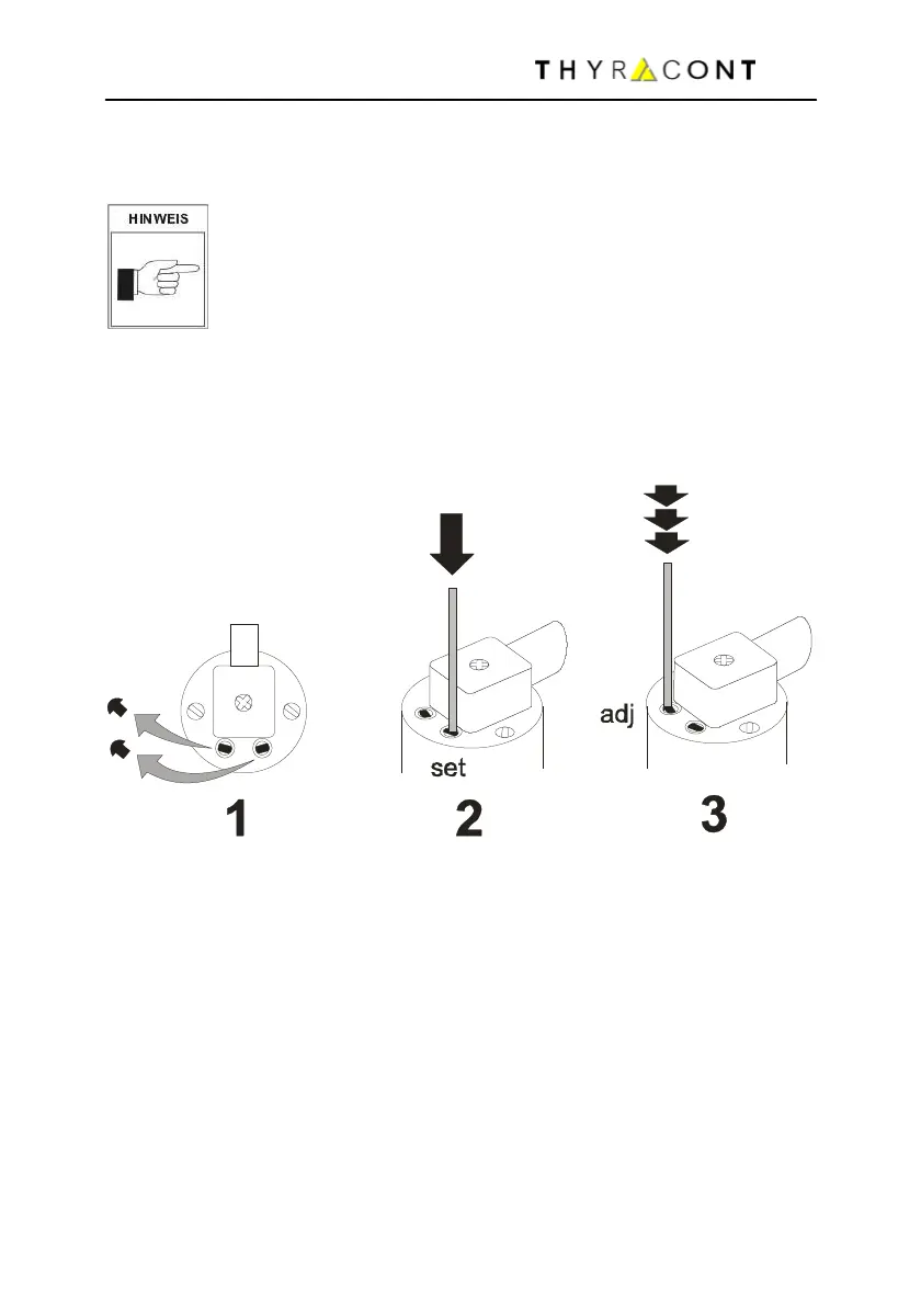 Zum Justieren zunächst die Gummistopfen über den Tastern "adj" und "set"