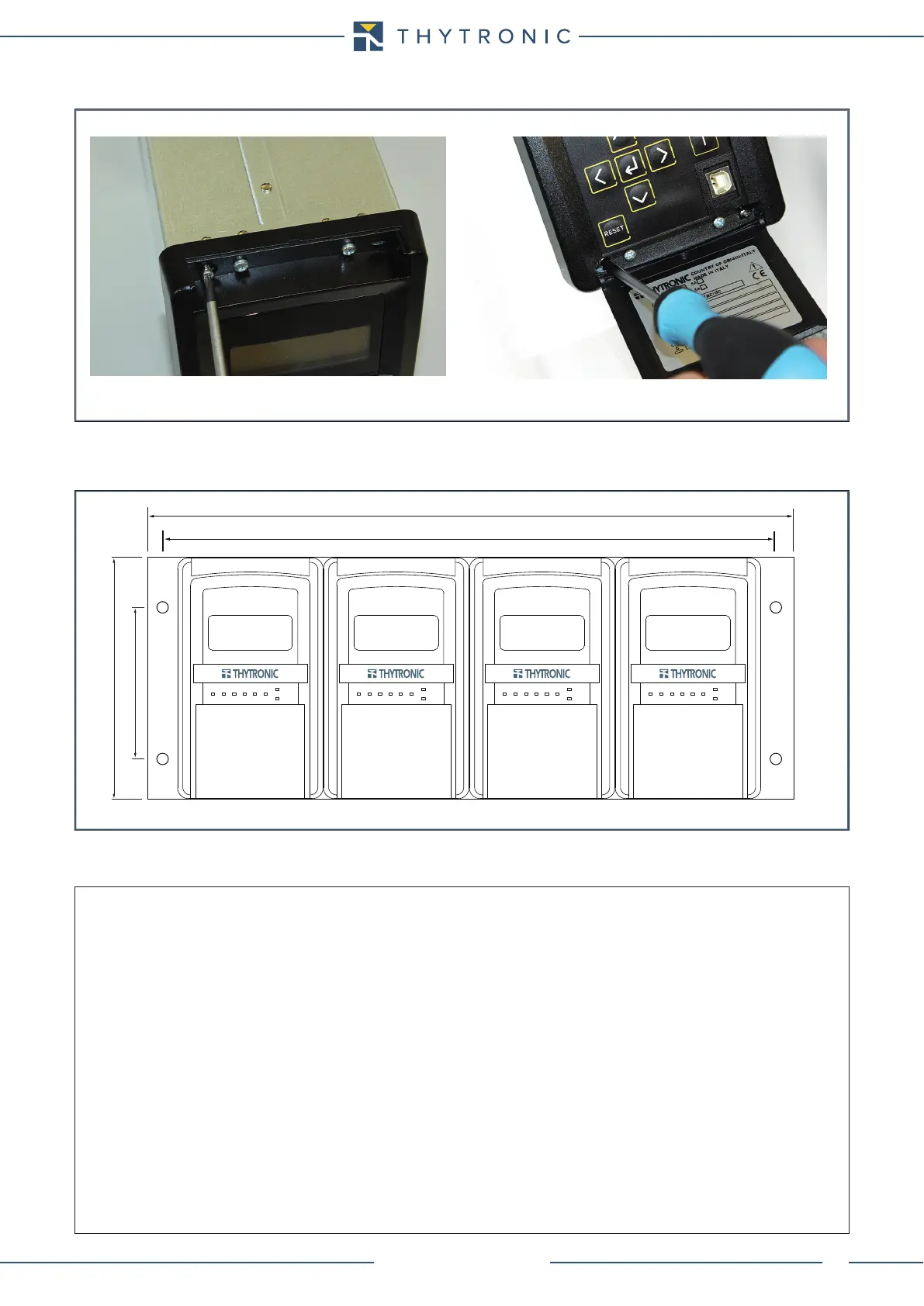 • The fixed case is fastened by means of four screws onto the panel as indicated in the drawing.