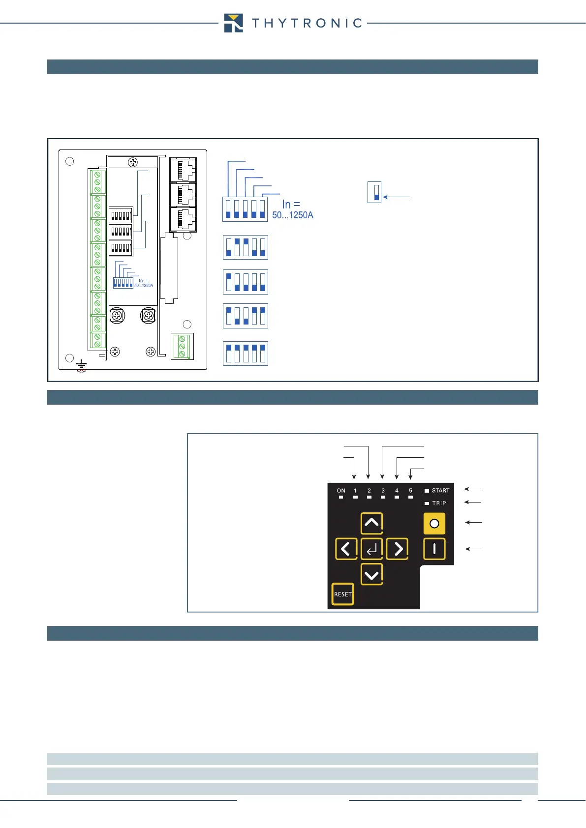 Note 1 For LPCT versions the dip-switch position, located inside the CPU board, concerning the phase current setting are irrelevant