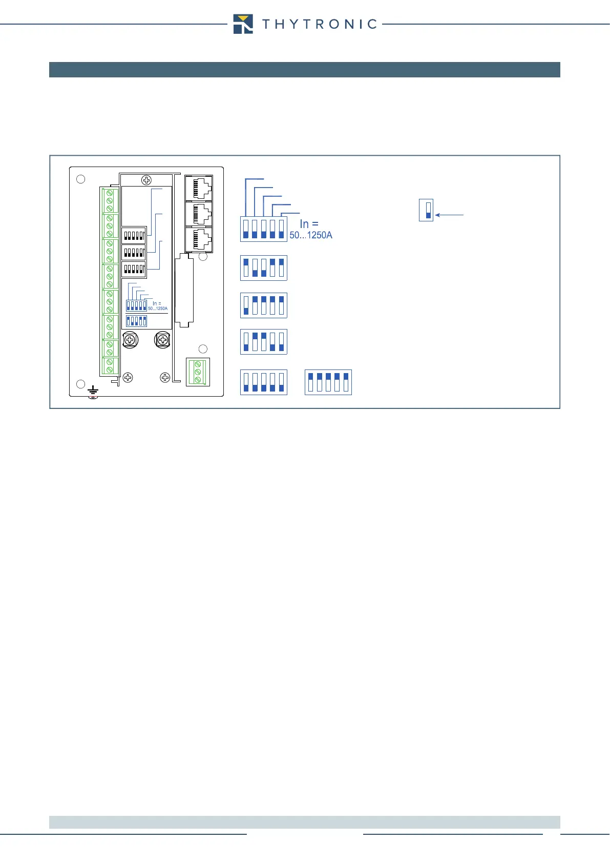 To modify the phase rated currents, the dip-switches placed on the rear panel must be set.