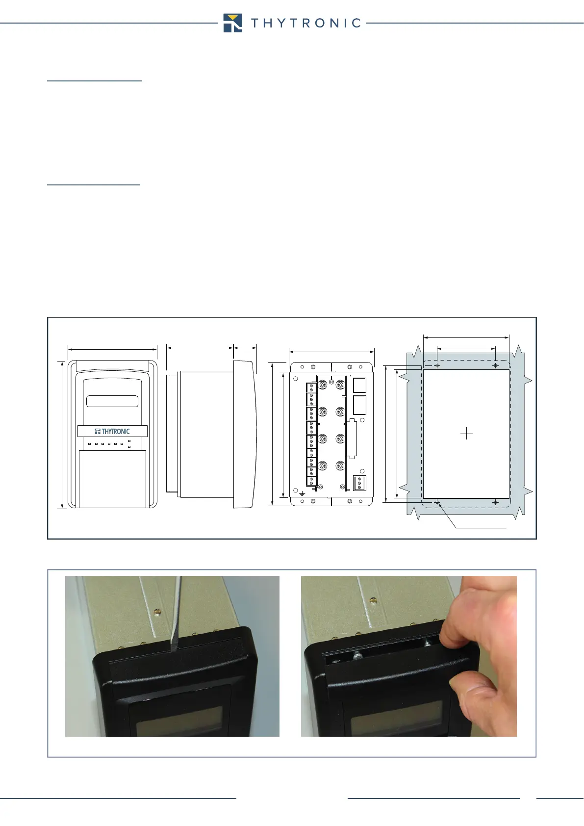 • The fixed case is fastened by means of four screws onto the panel as indicated in the drawing.