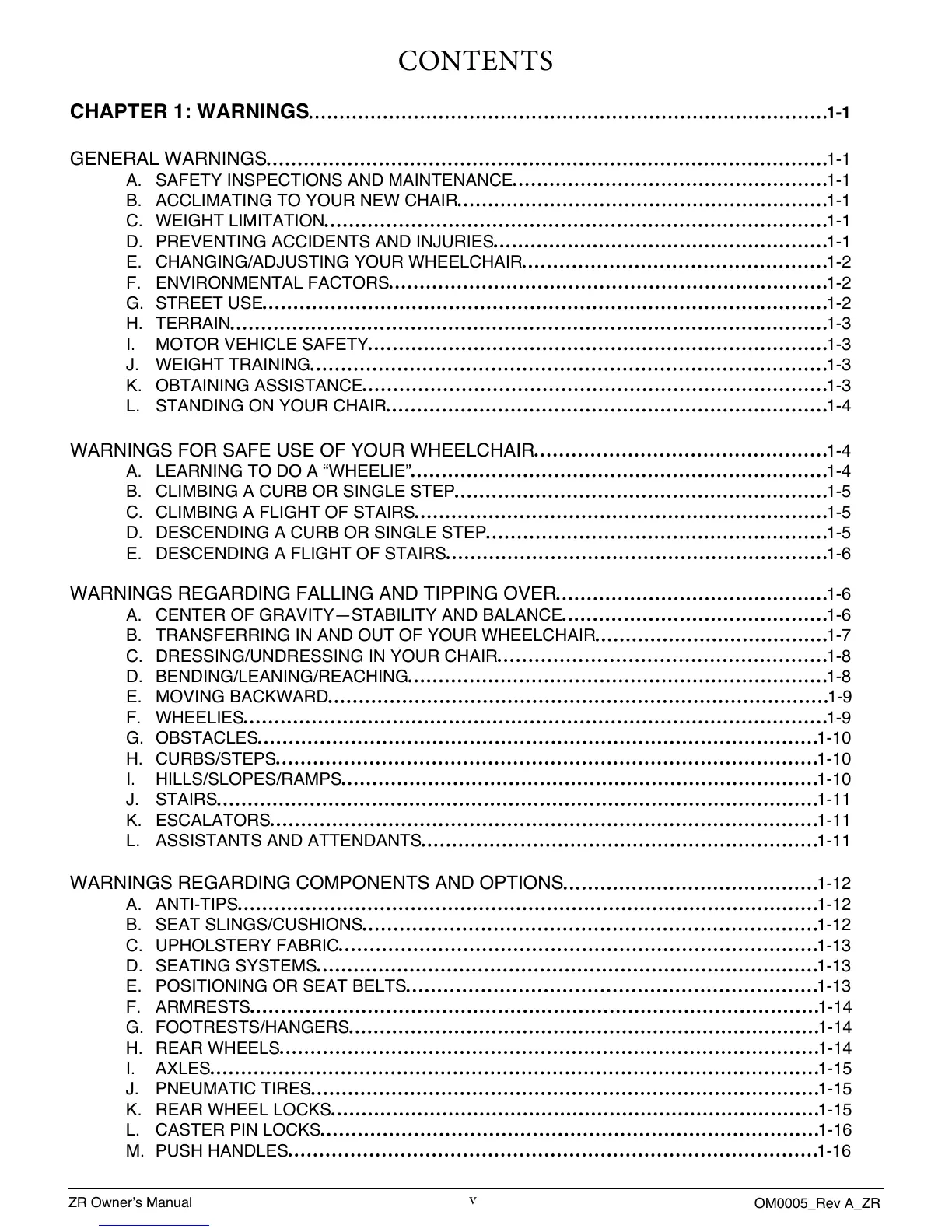 WARNINGS FOR SAFE USE OF YOUR WHEELCHAIR 1-4