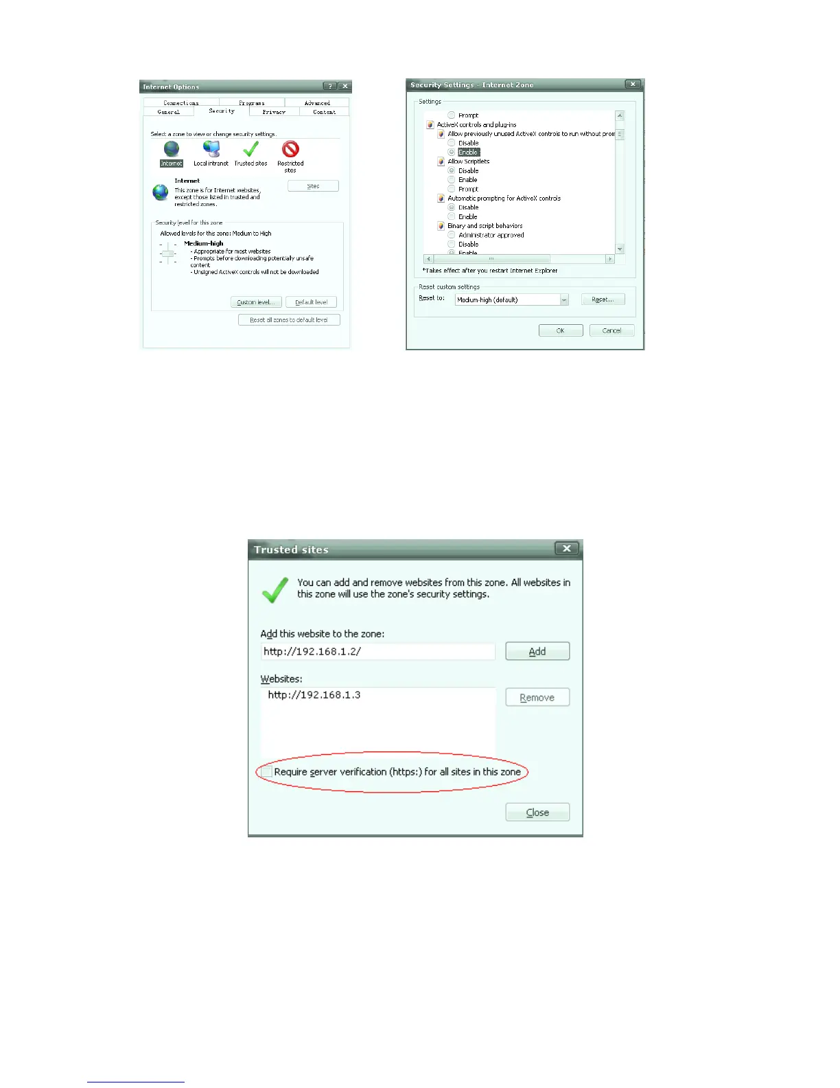 3.If you use Windows XP, that would add IP address of Network Video in “trust sites” (as