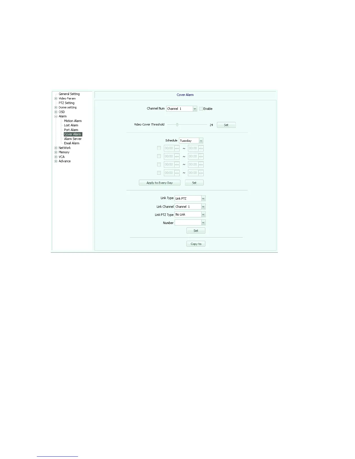 [Link PTZ Type]: optional no link, preset position, pattern tour etc.
