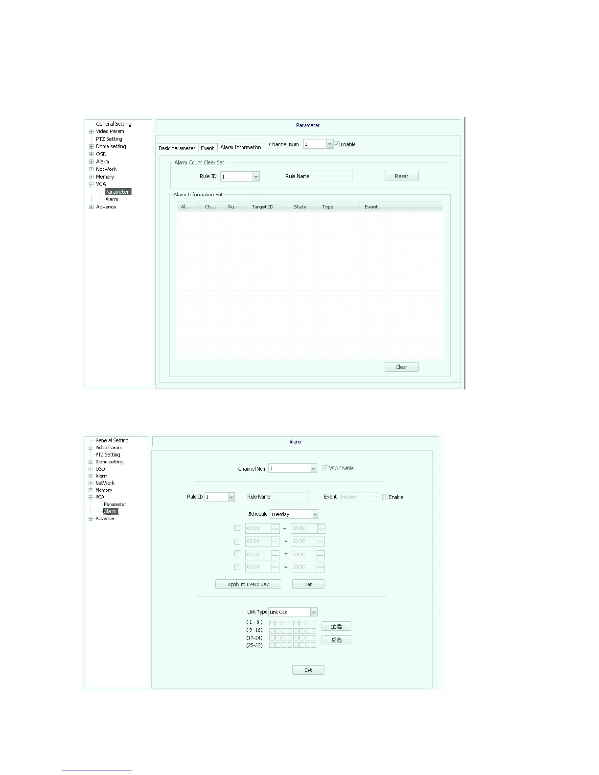 Tiandy IP Speed Dome Camera - Alarm Information and VCA Settings