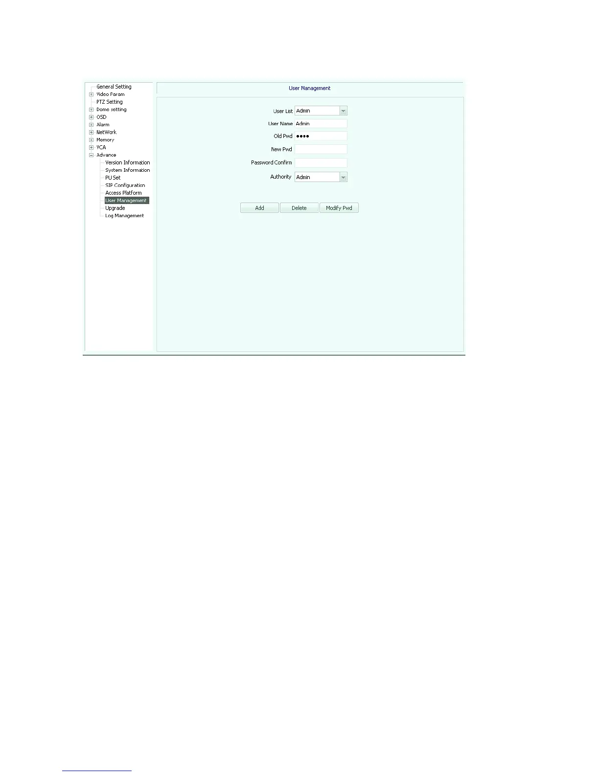 【delete user】: select targeted user and click “delete” to delete this user