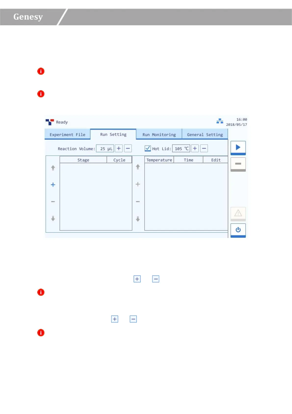 Users could set the temperature program, cycle, reaction volume and hot lid temperature for the