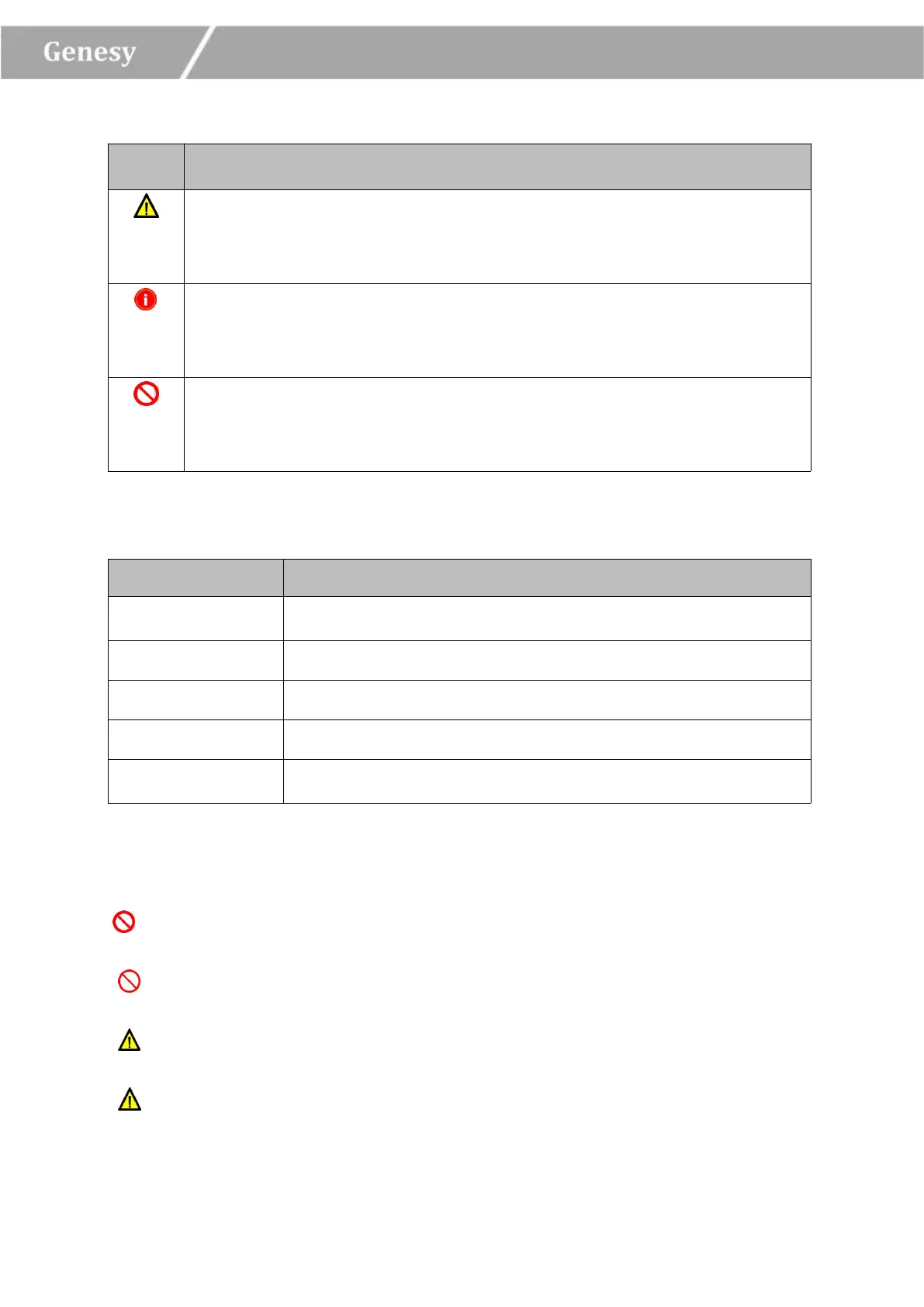 Genesy instrument in any manner unspecified in this manual may results in
