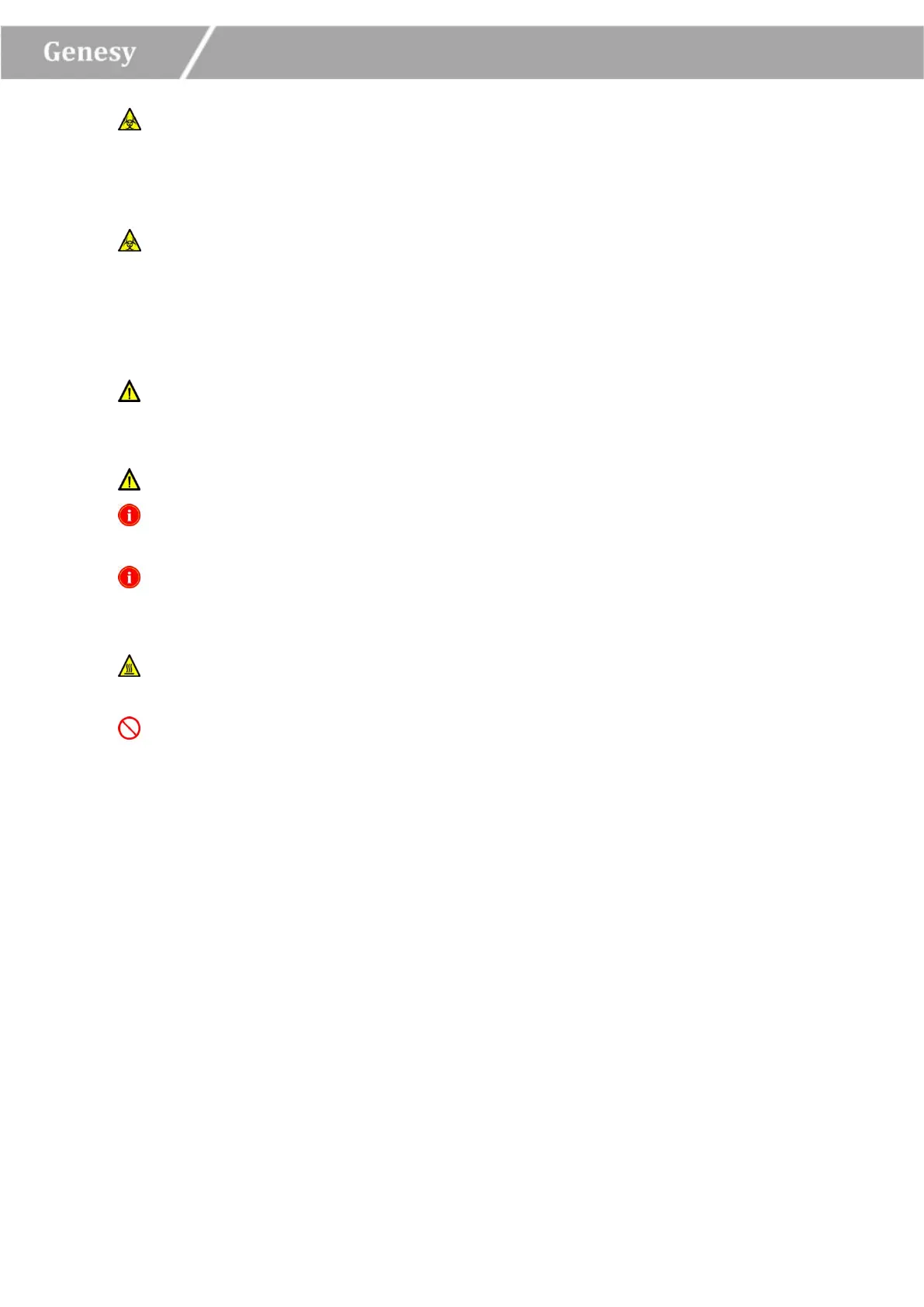 For protection against electric shock hazards, the Genesy thermal cycler must be grounded