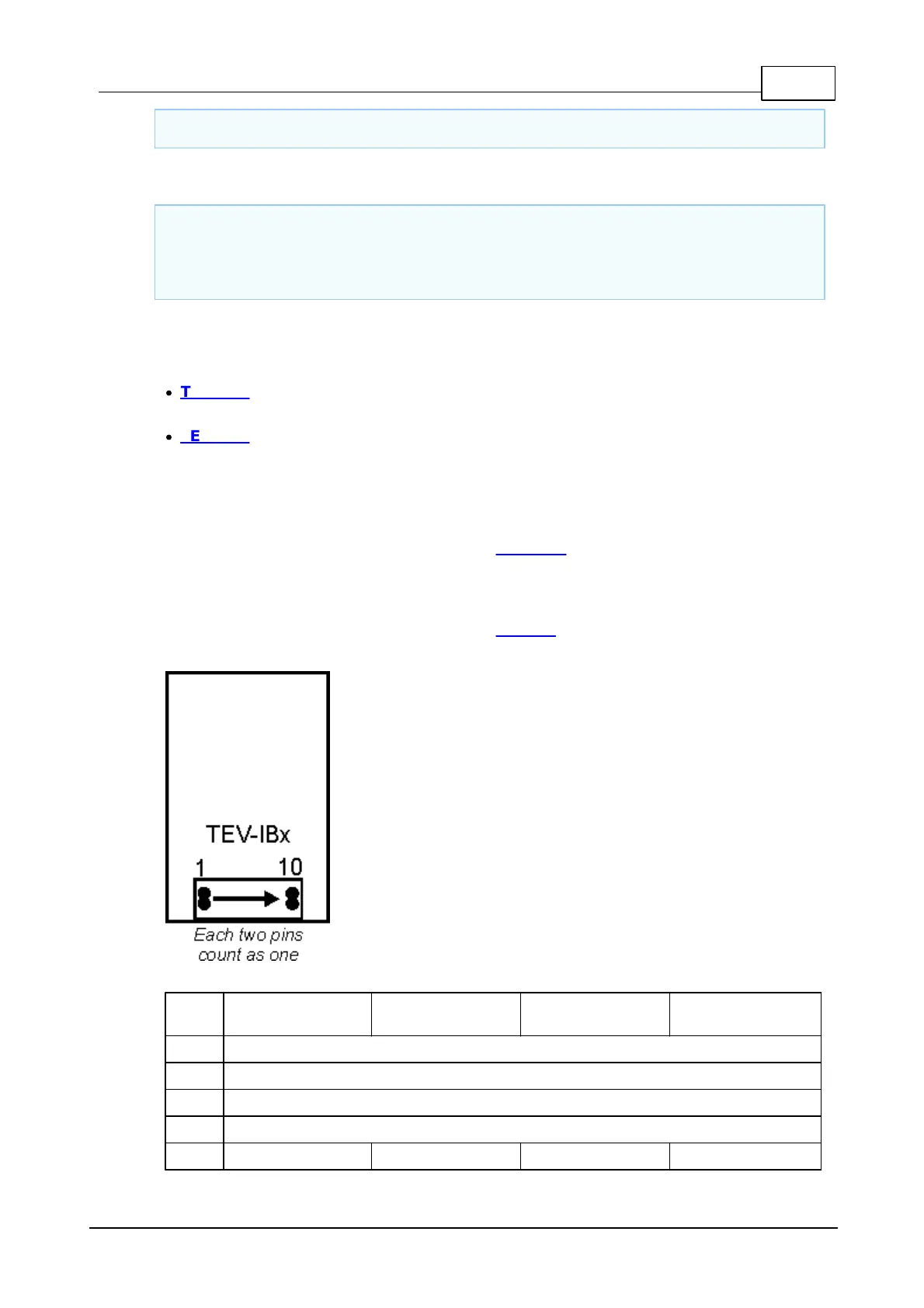 The TEV-IBx boards are connected to the TEV-MB0 motherboard through a 2x10-pin