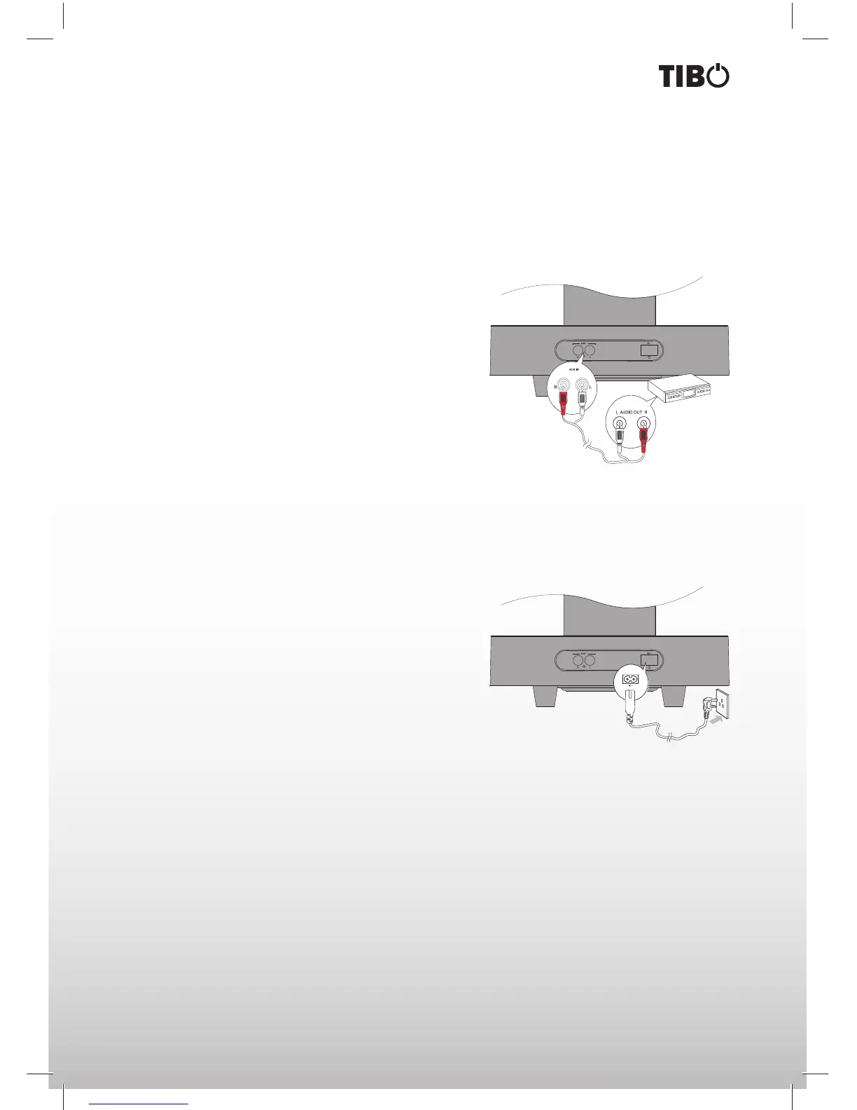 Using AUX IN socket connect audio cables to the AUX IN sockets on back of the unit. The audio output sock-