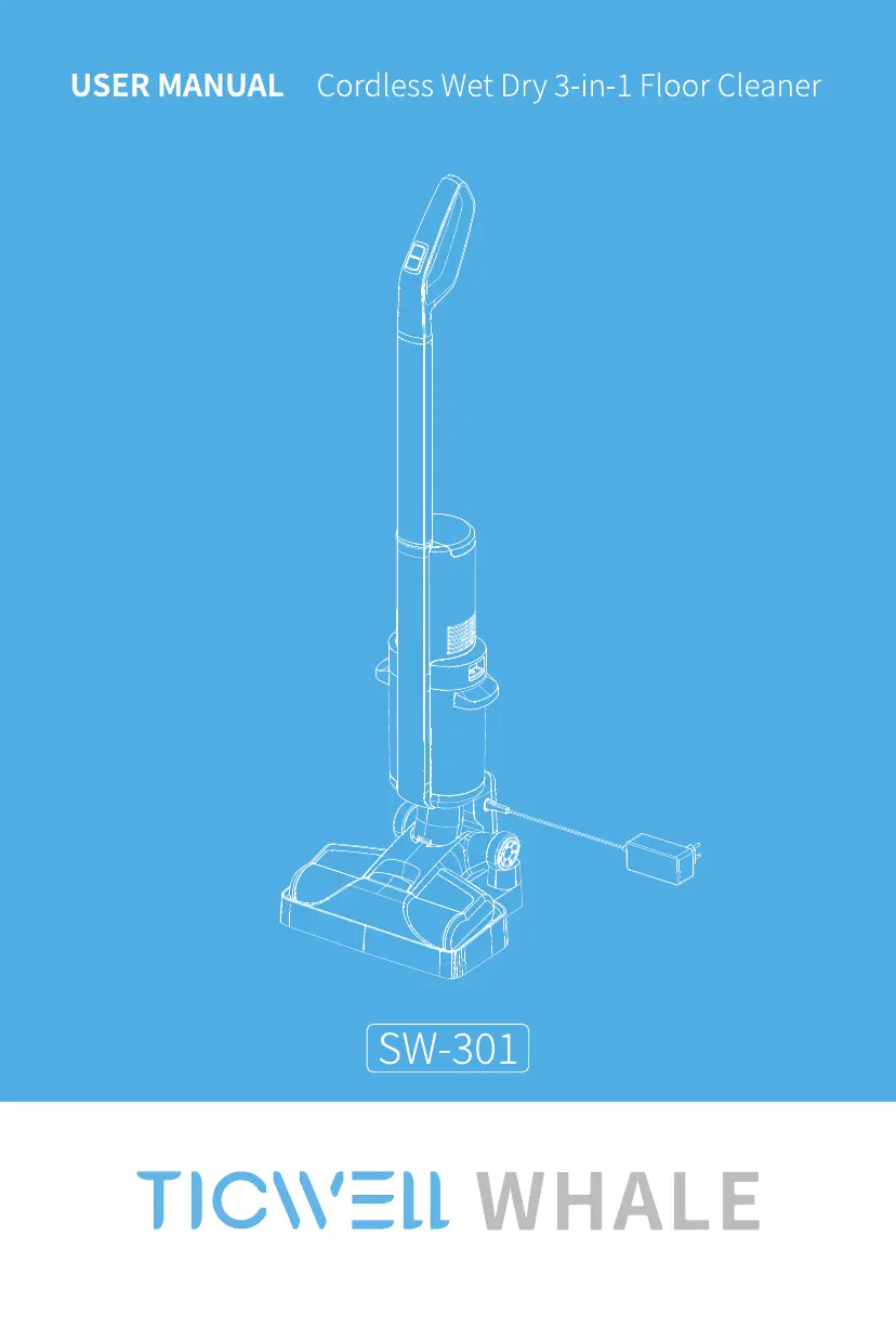 Your TICWELL WHALE Vacuum Cleaner might not be working due to several reasons: it could be out of power, so charge it. Ensure the ON/OFF button is pressed. A seriously tangled rolling brush body can also cause this, so clean it. Also, the machine may stop if the sewage tank is full, so make sure to clean the sewage tank.