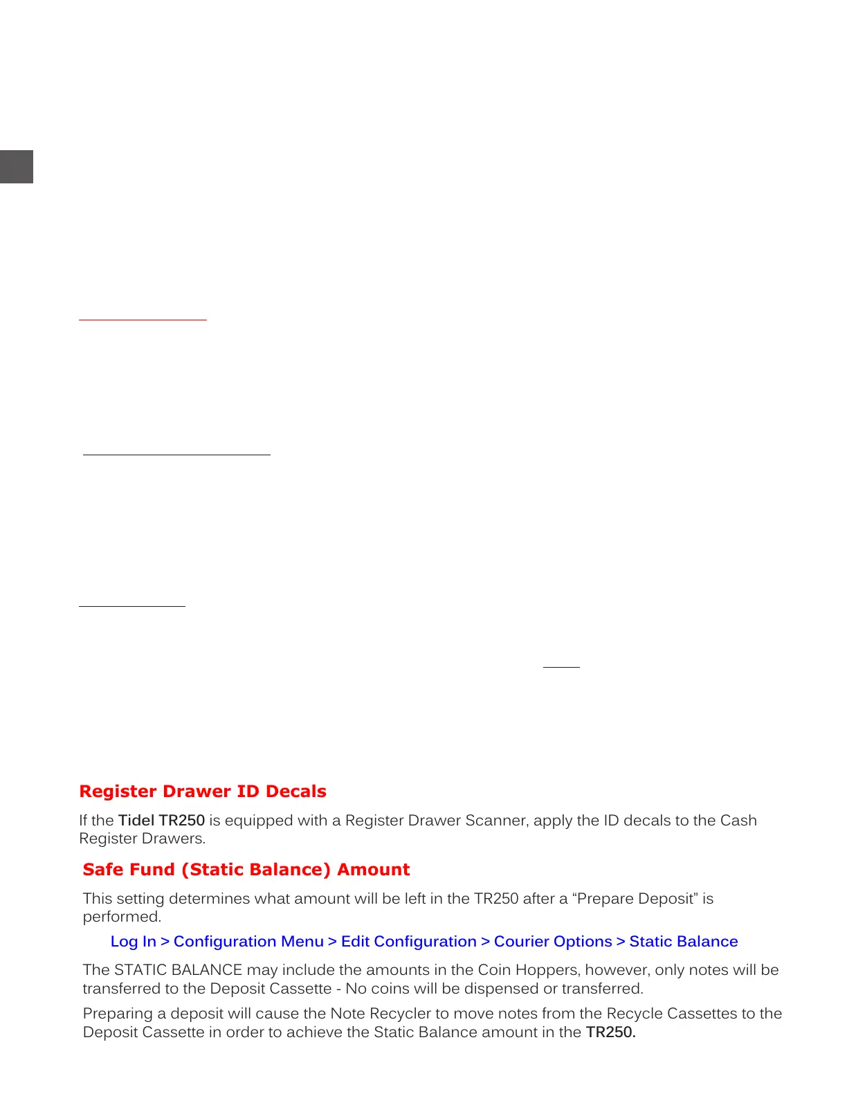 This setting determines what amount will be left in the TR250 after a “Prepare Deposit” is