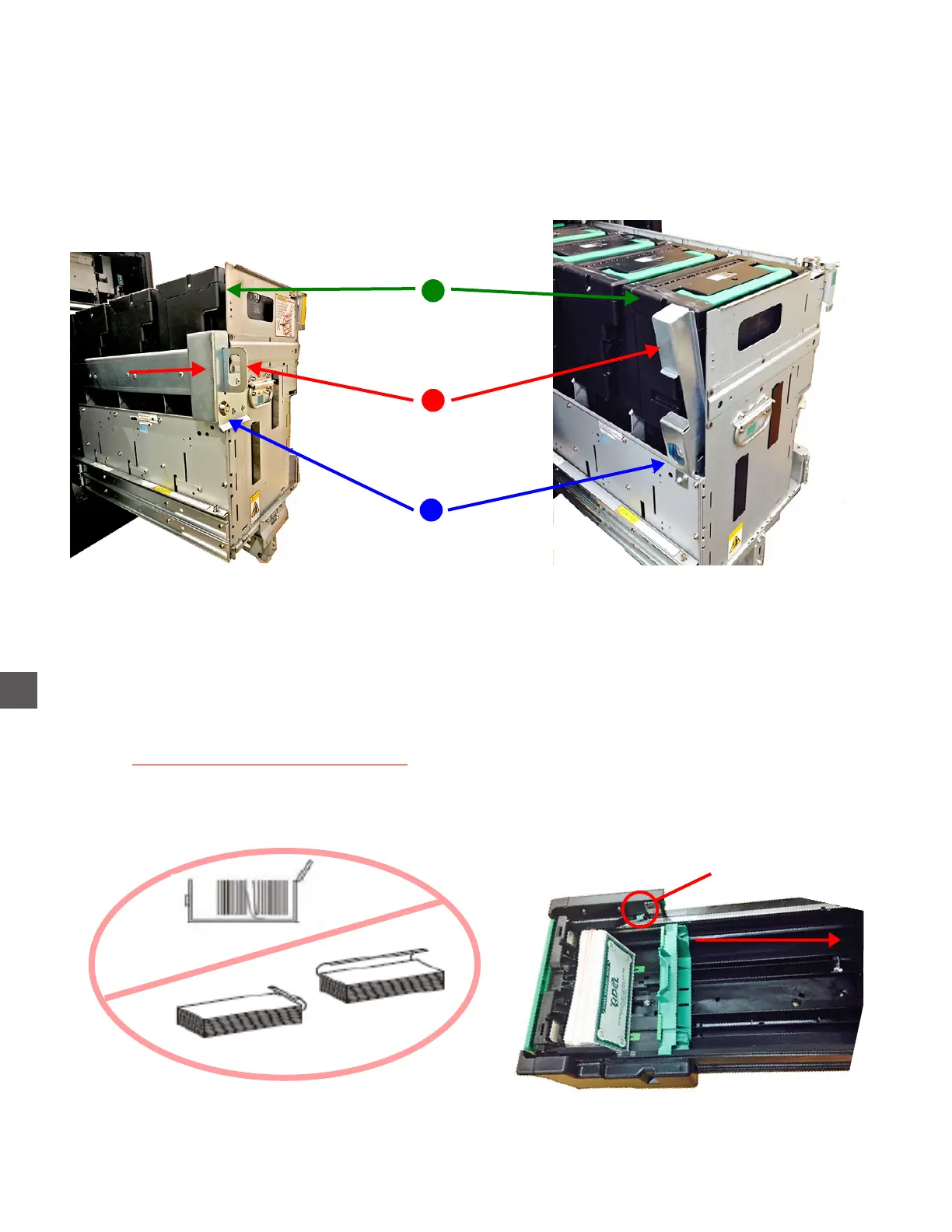 4) Load notes level and evenly (2700 notes maximum per Recycle Cassette).