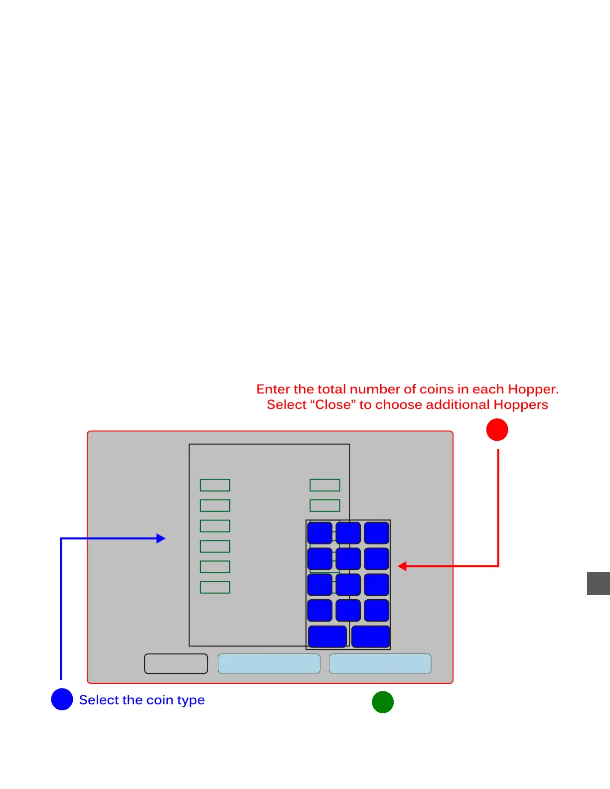 Log In > Status (bottom tool bar) > Coin Recycler > Empty Bin