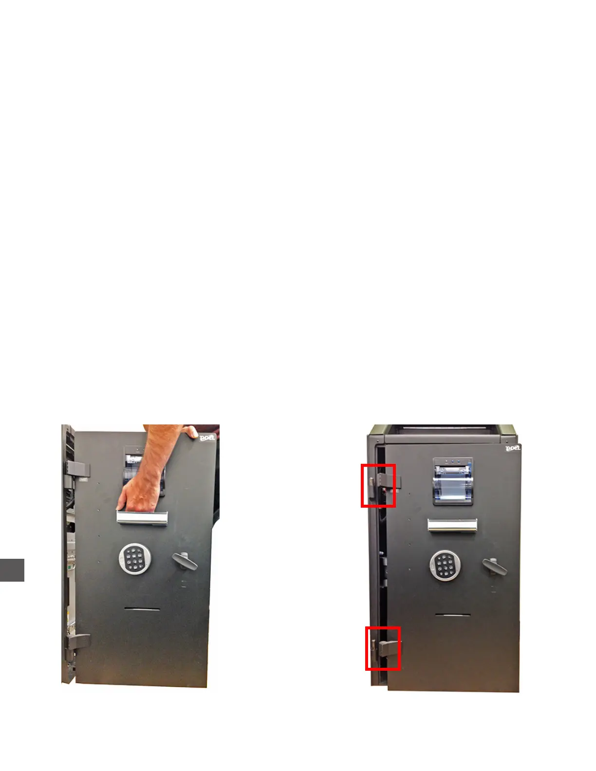 2) Place a hand into the vault door opening for the “Foreign Object Reject Tray”, just below the