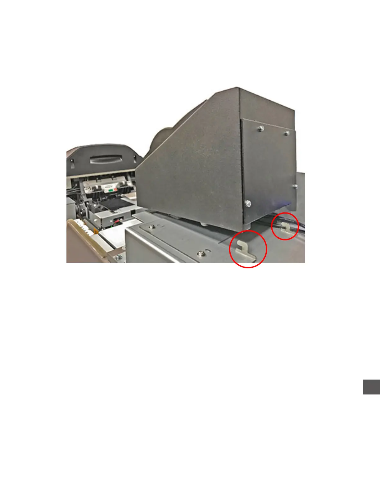 Step 2: With the Printer forward, align the Control Computer cabling with the channel at the top of the