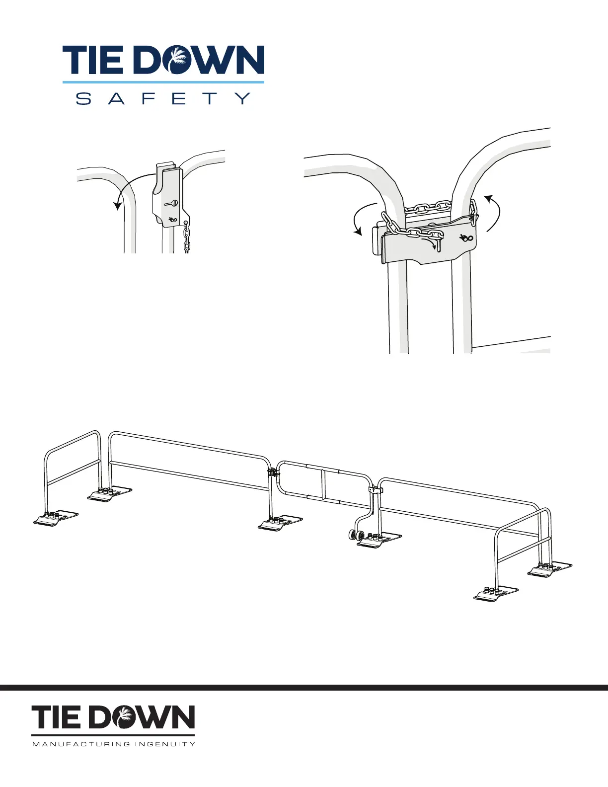Latch. Wrap the safety chain around both guardrail
