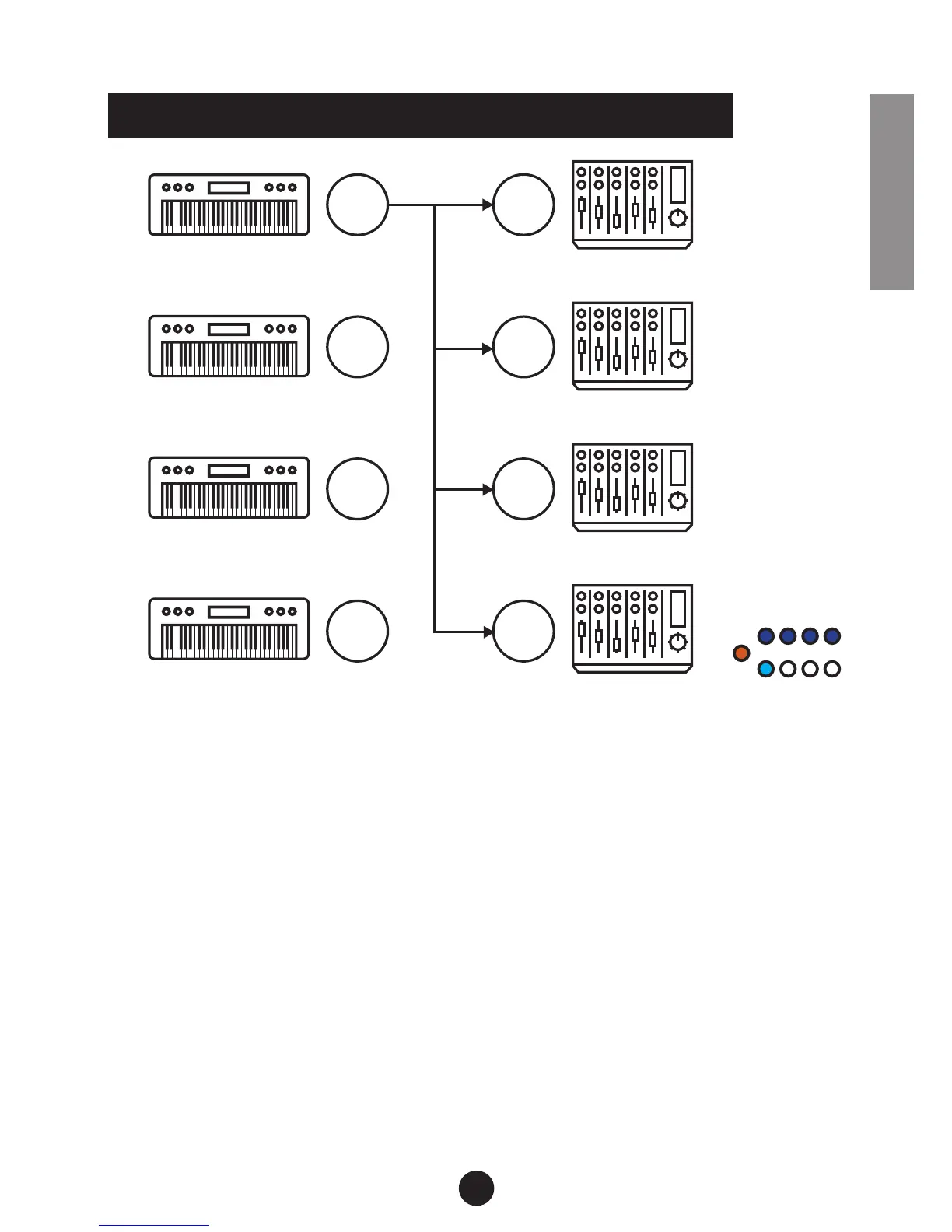 Les leds de sortie sont allumées lorsque les données d‘entrée MIDI sont reçues.