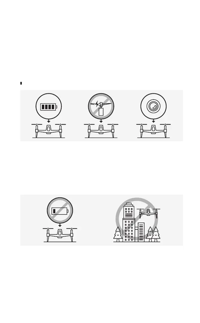 · Check that the intended ight path is free of obstacles such as people, animals,