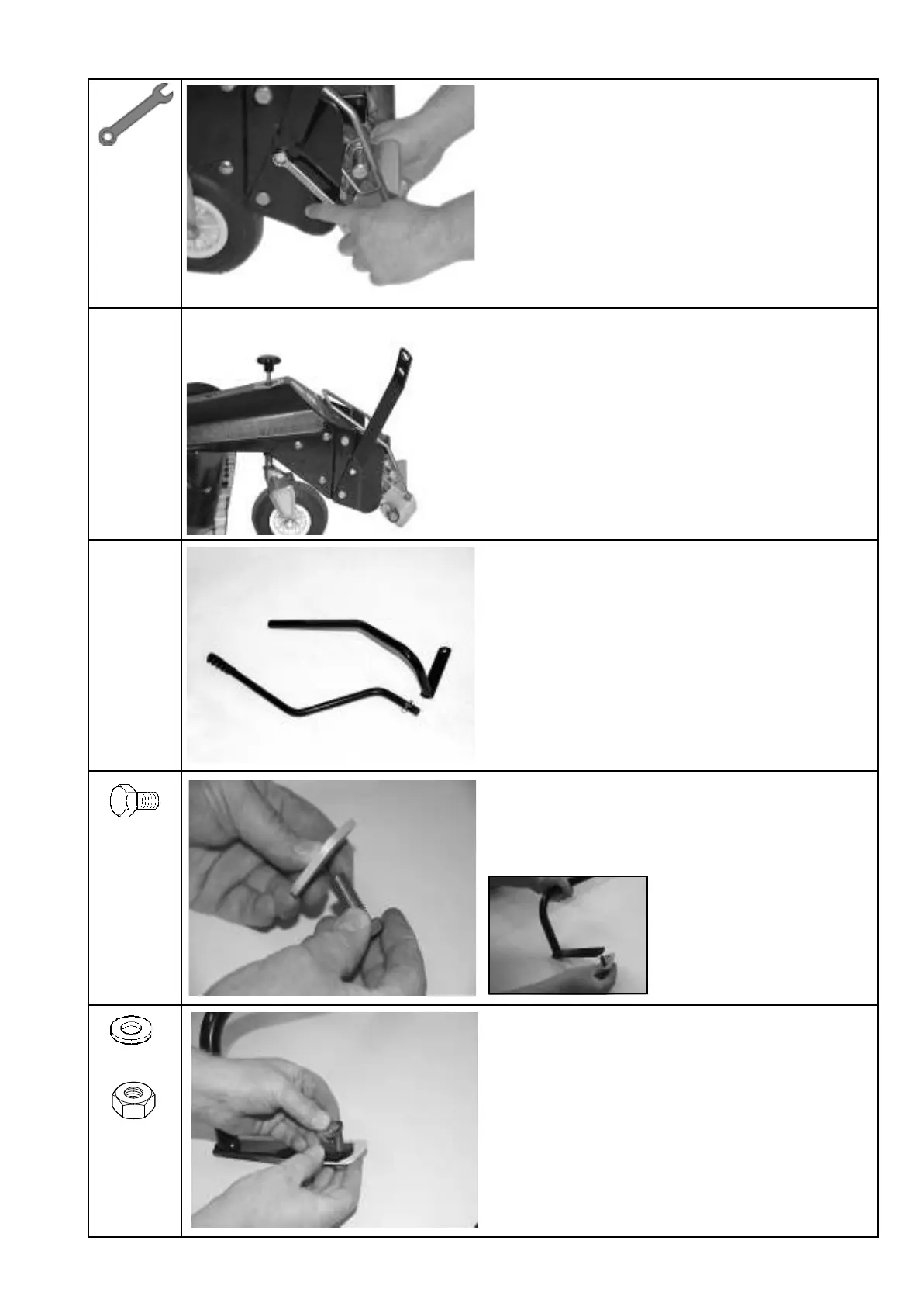 Turn the washer and nut on the bolt.