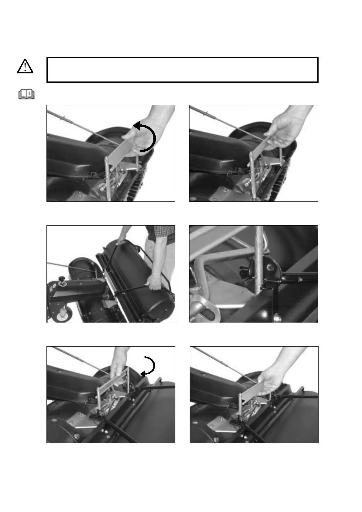 Switch off the engine. Secure the lawn tractor against being started inadvertently or rolling away.