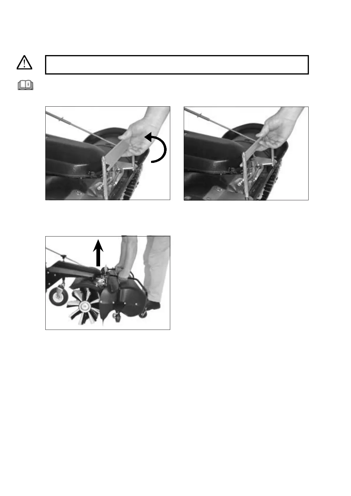 Switch off the engine. Secure the lawn tractor against being started inadvertently or rolling away.