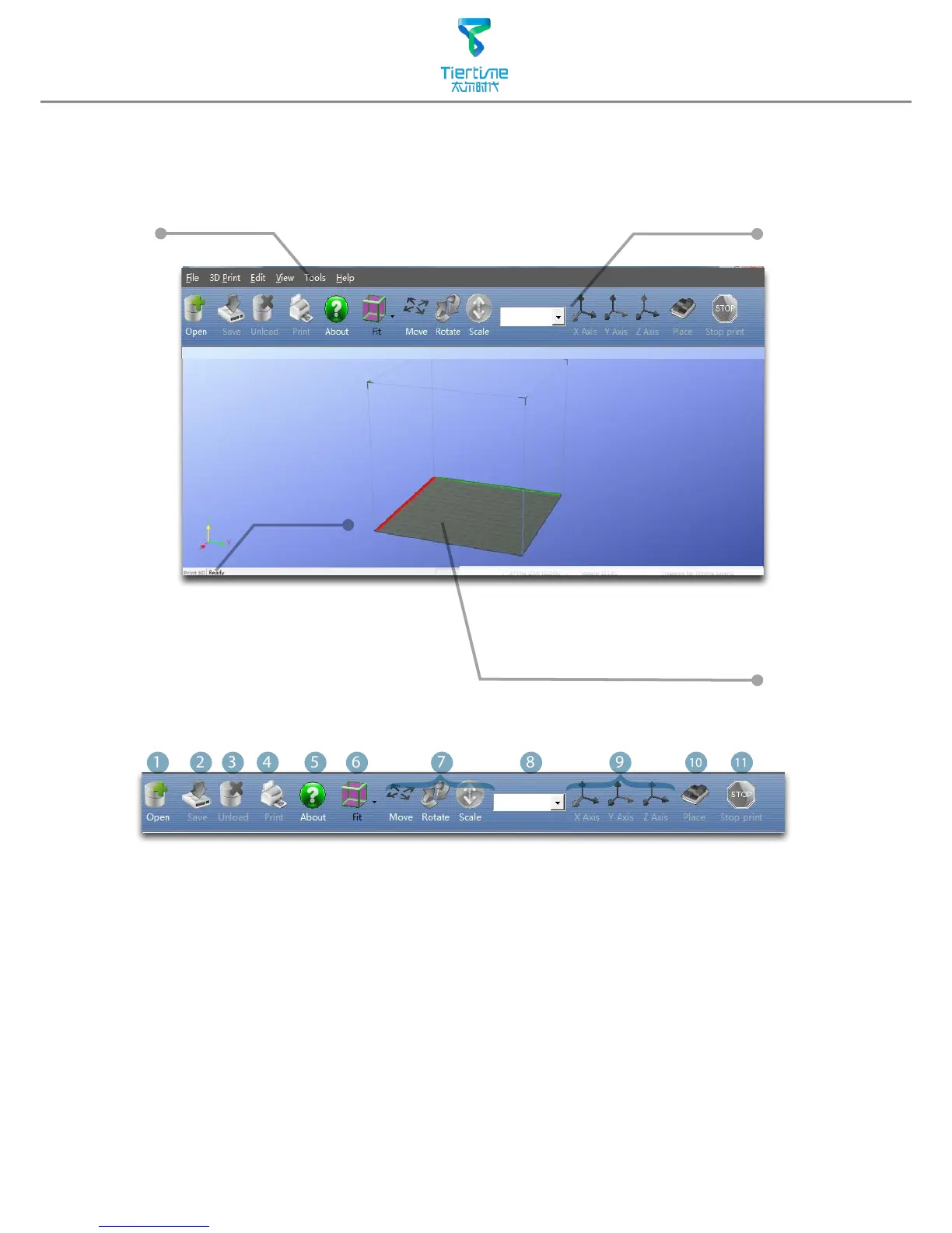 11. Stop: If connected to printer, click this will stop the printing process. (cannot be