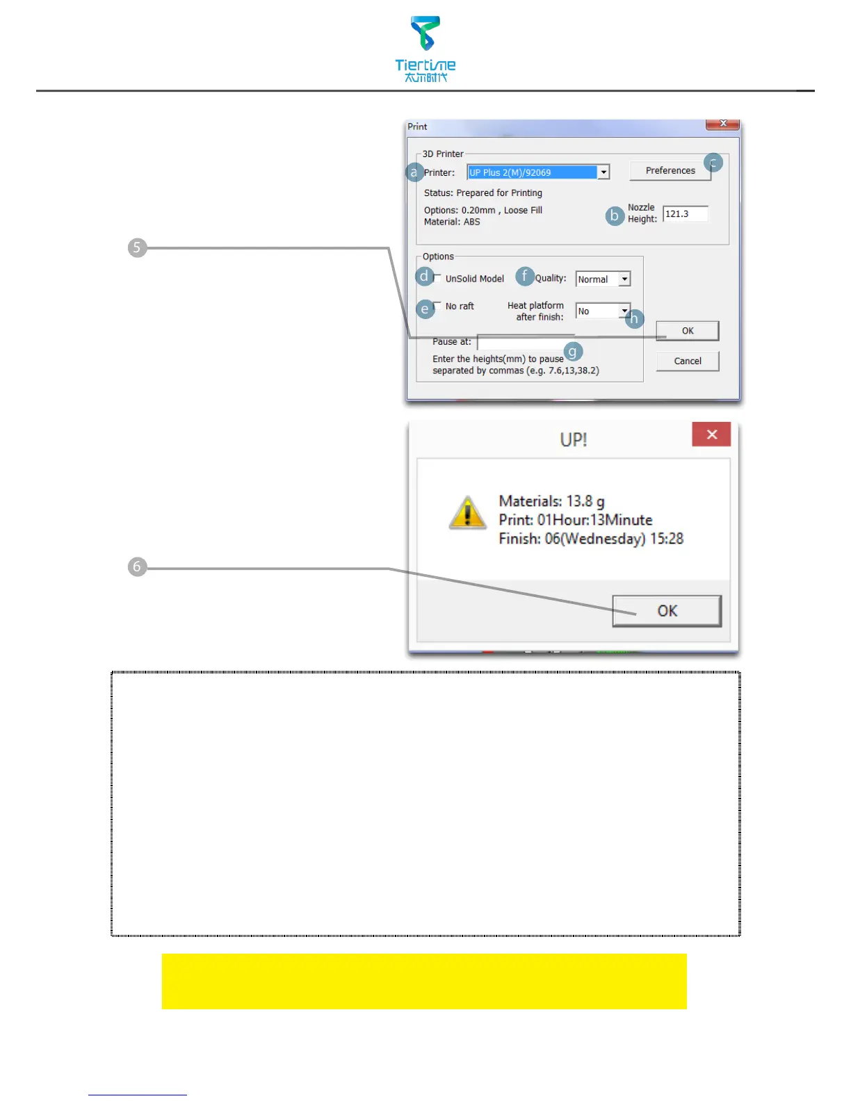 g. Set the pause height, the printer will pause at indicated heightness for