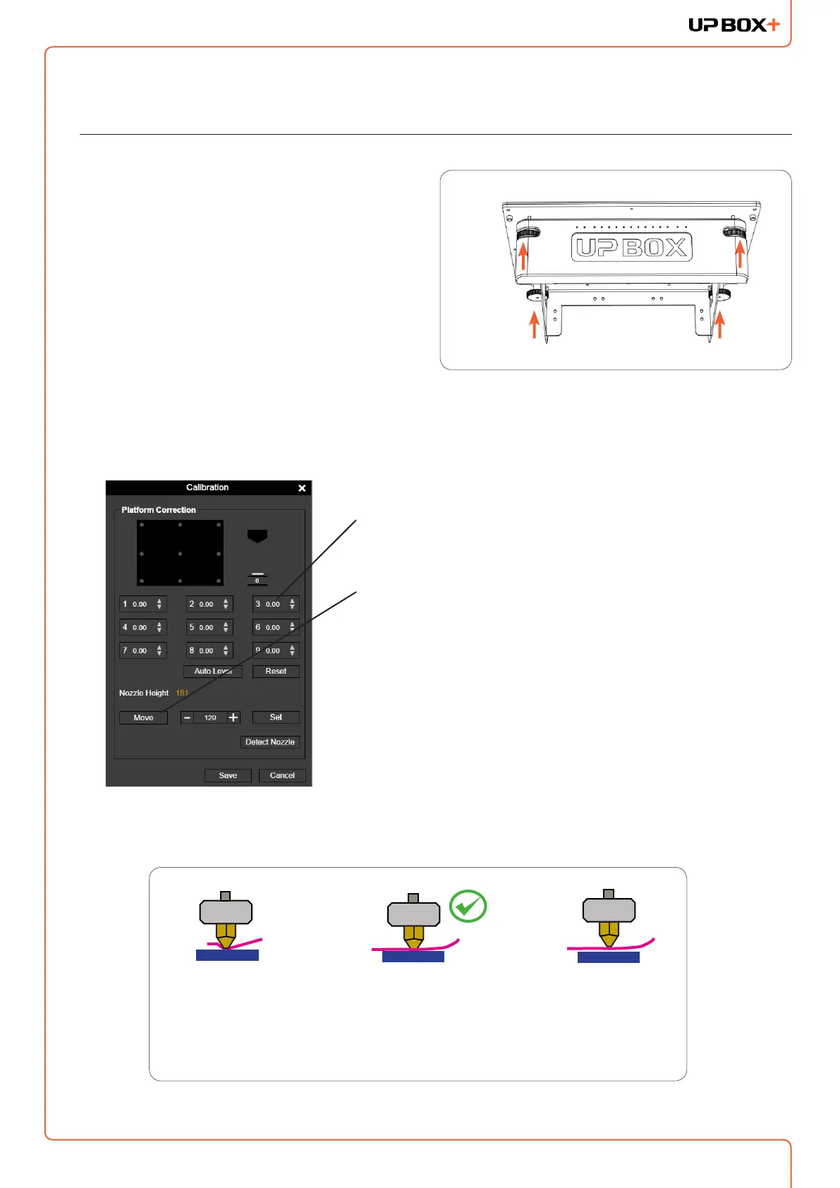the nozzle (e.g. nozzle height). Use the Calibration