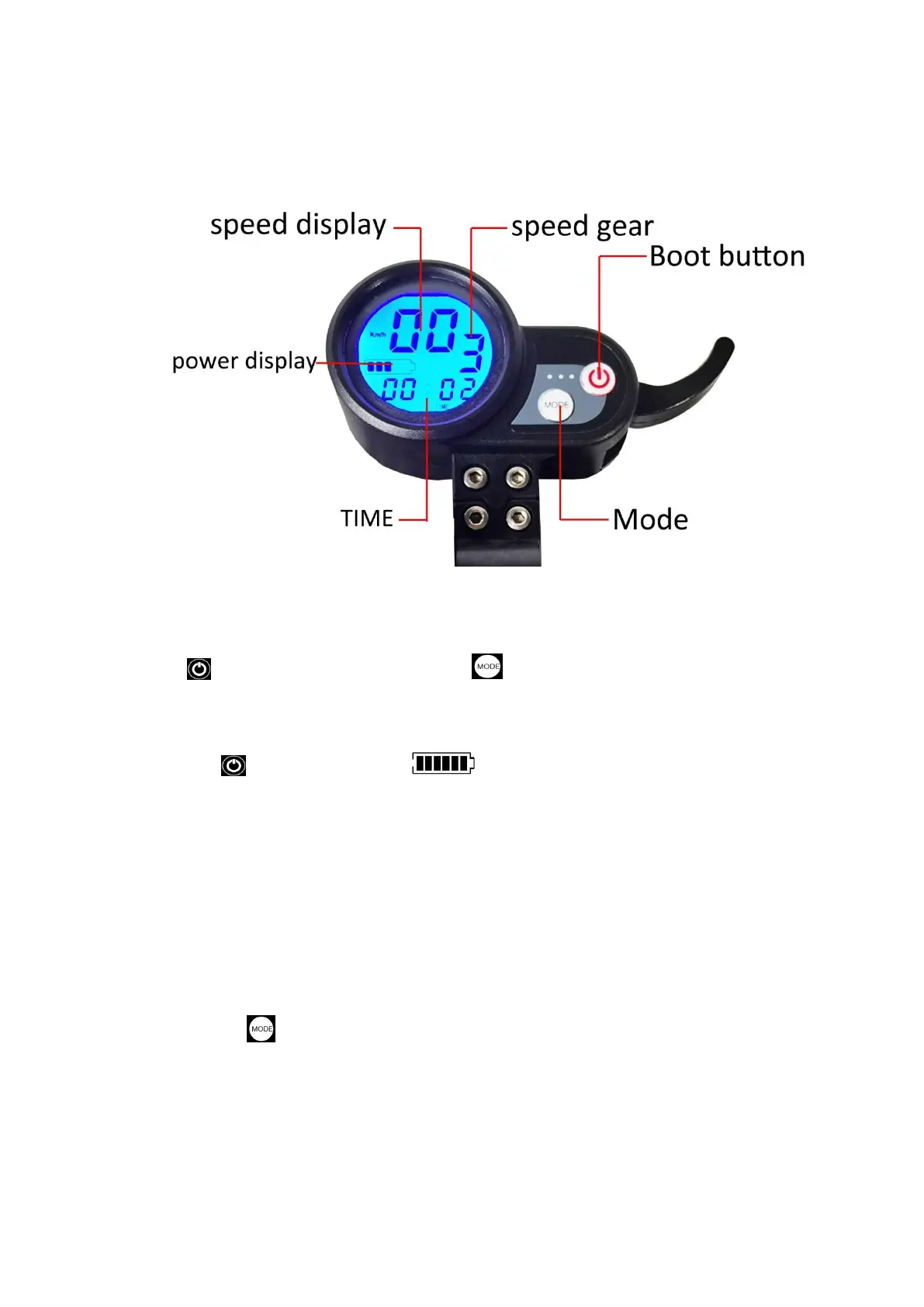 Long press to turn on the power, the battery power and speed are