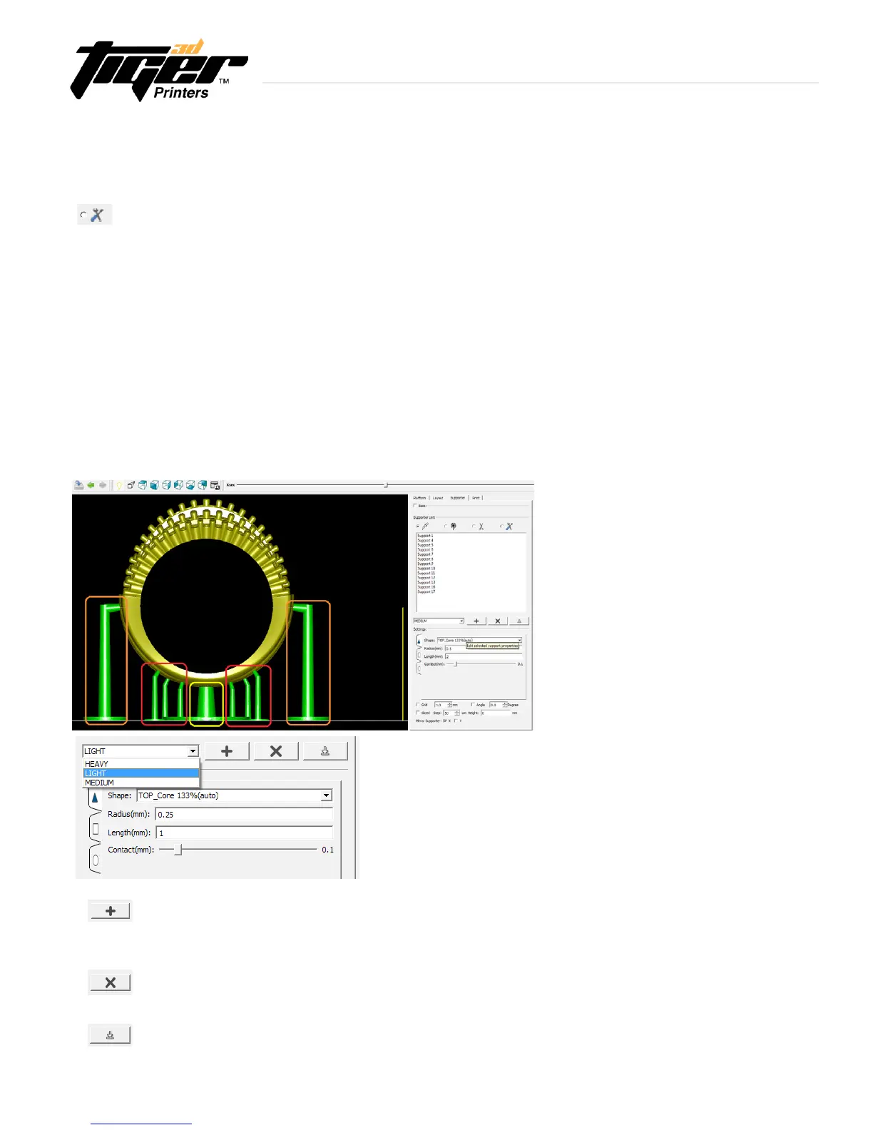 - PrinterTool has 3 preset support modes. The user can edit and set custom supports