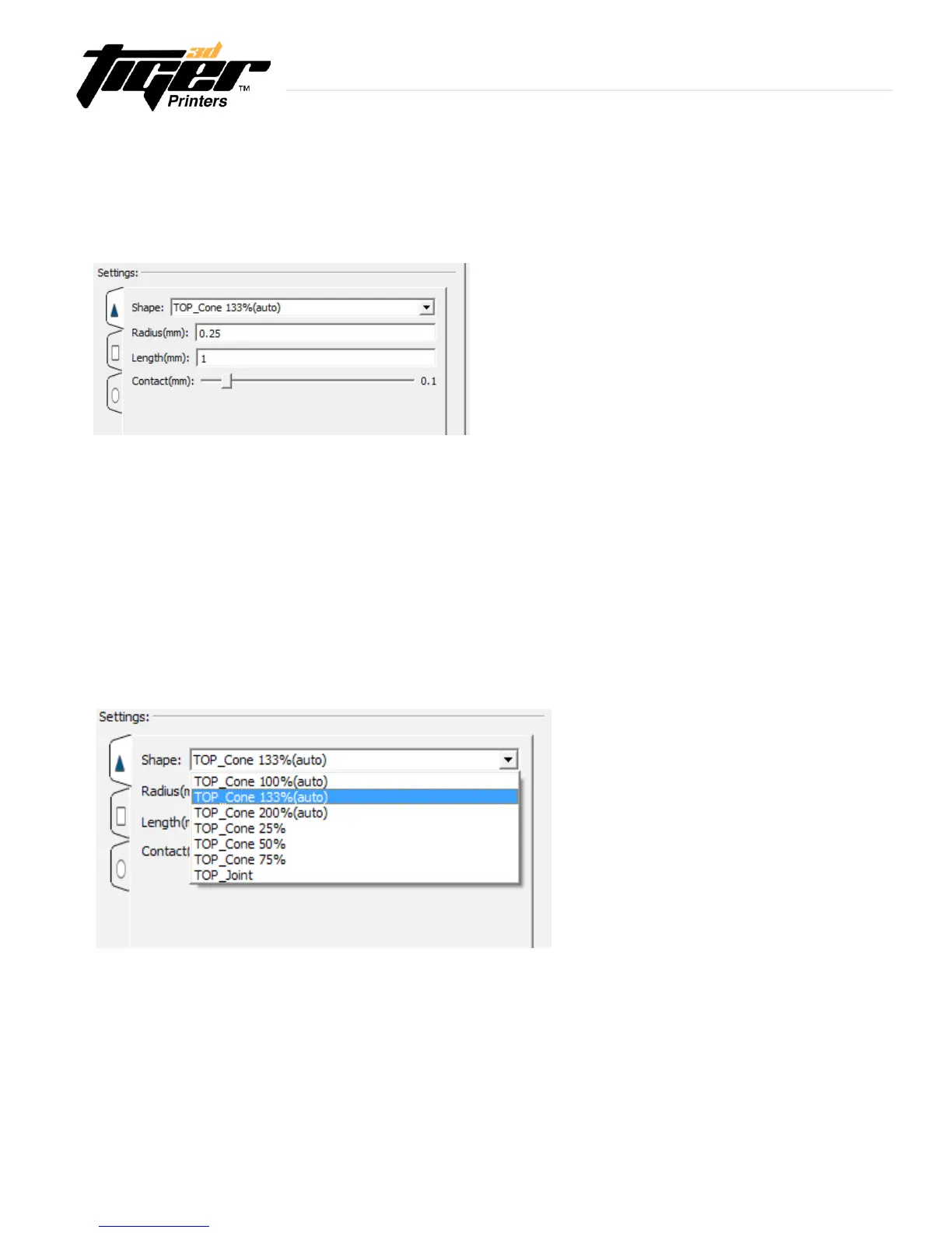 PrinterTool incorporated 7 different shapes of the joint section. For a slight joint or stronger support, you can select