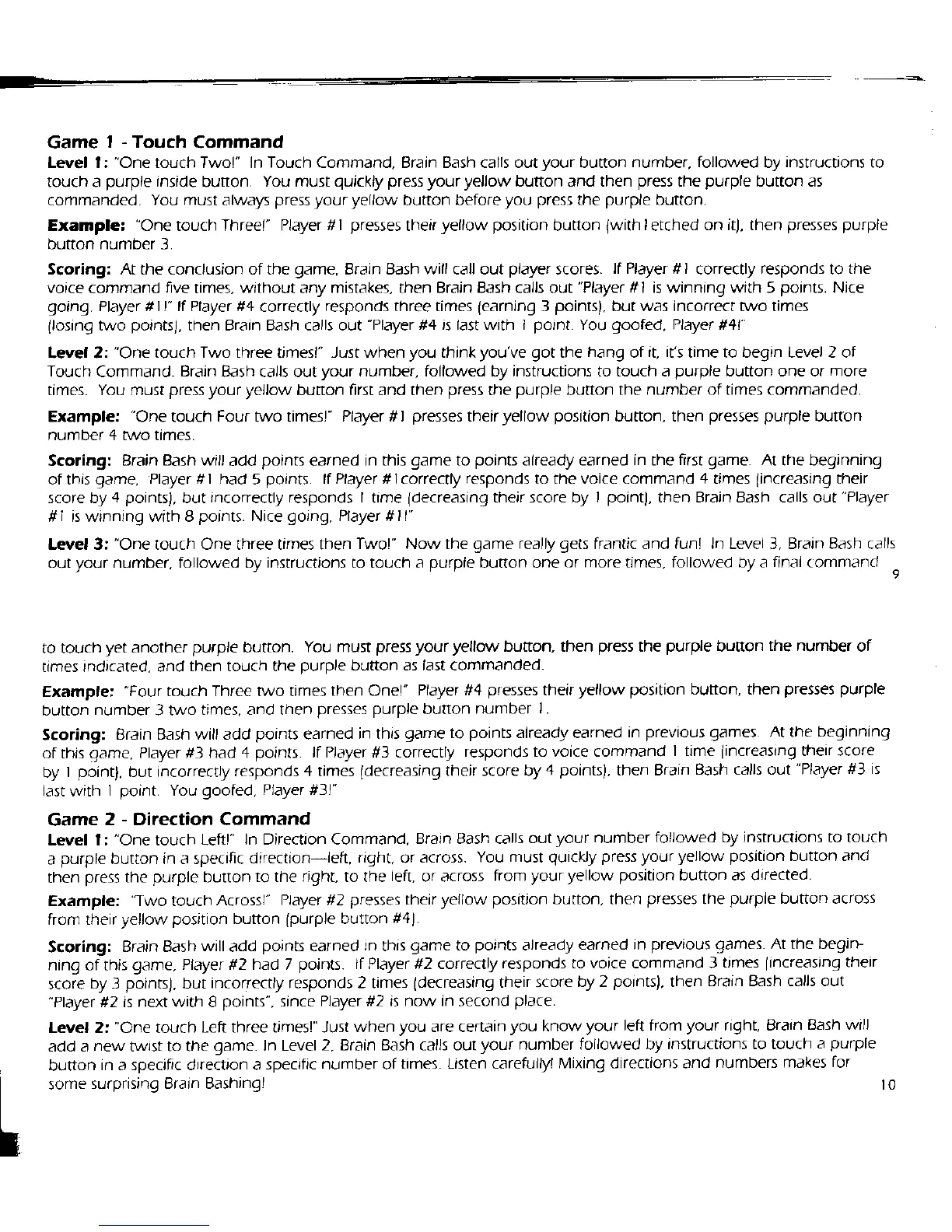 Tiger Electronics 92-002 - Game 1: Touch Command; Level 1: Single Touch; Level 2: Multiple Touches; Level 3: Sequence Commands