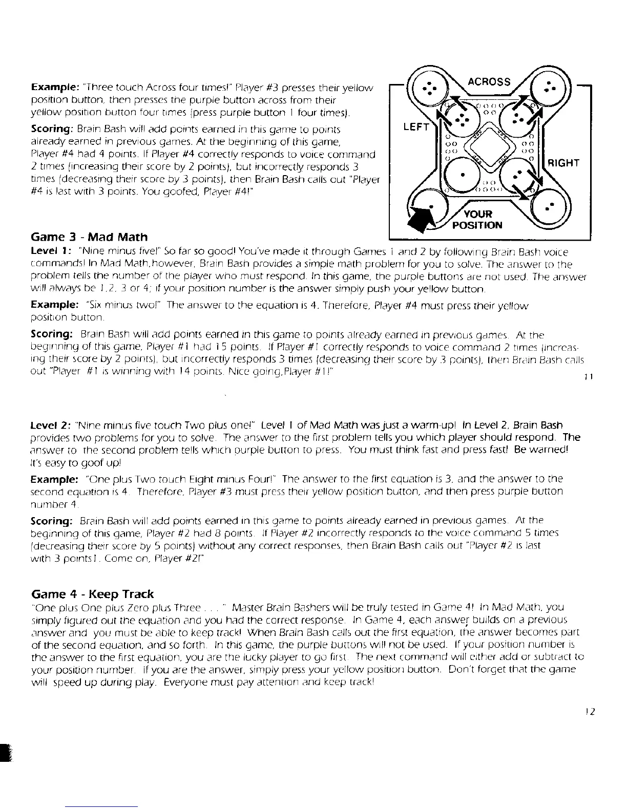Tiger Electronics 92-002 - Game 3: Mad Math; Level 1: Single Equation; Level 2: Dual Equation Challenge; Game 4: Keep Track