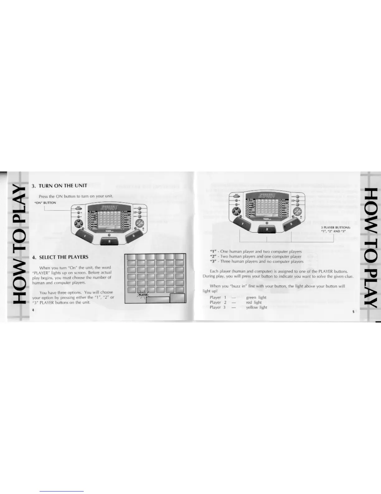 Tiger Electronics Jeopardy! 7-581 - Turning On and Player Setup; Player Selection and Indicator Lights