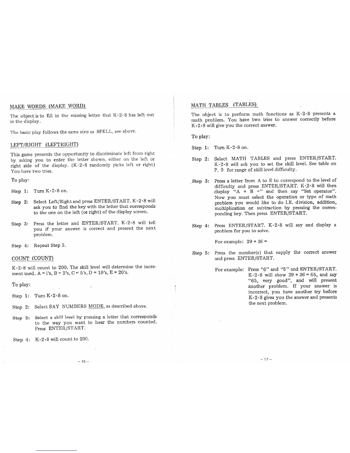 Tiger Electronics K28 Talking Learning Computer 7-230 - Specific Game Modes: Words and Numbers; Word Building and Spatial Games; Counting and Math Table Games