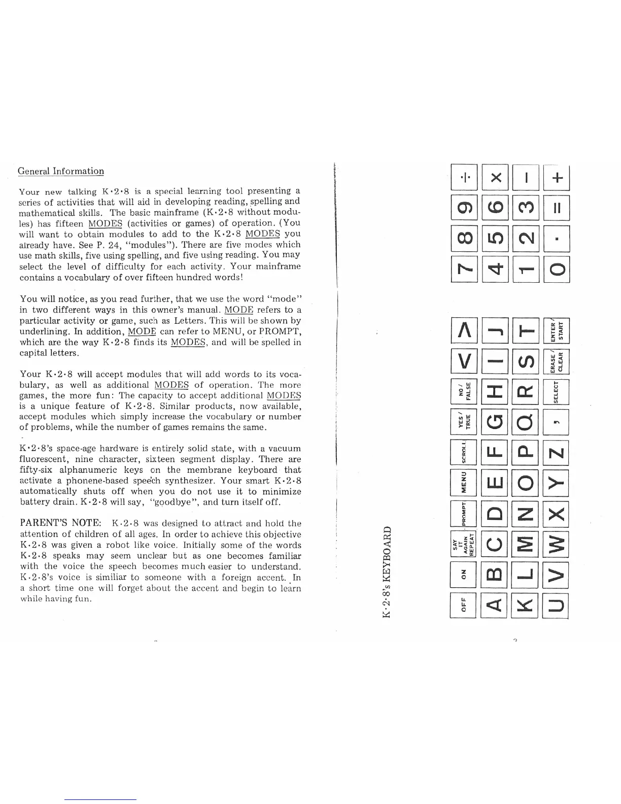 Tiger Electronics K28 Talking Learning Computer 7-230 - Understanding the K.2.8 Learning Computer; General Product Overview; Parent Guidance Note