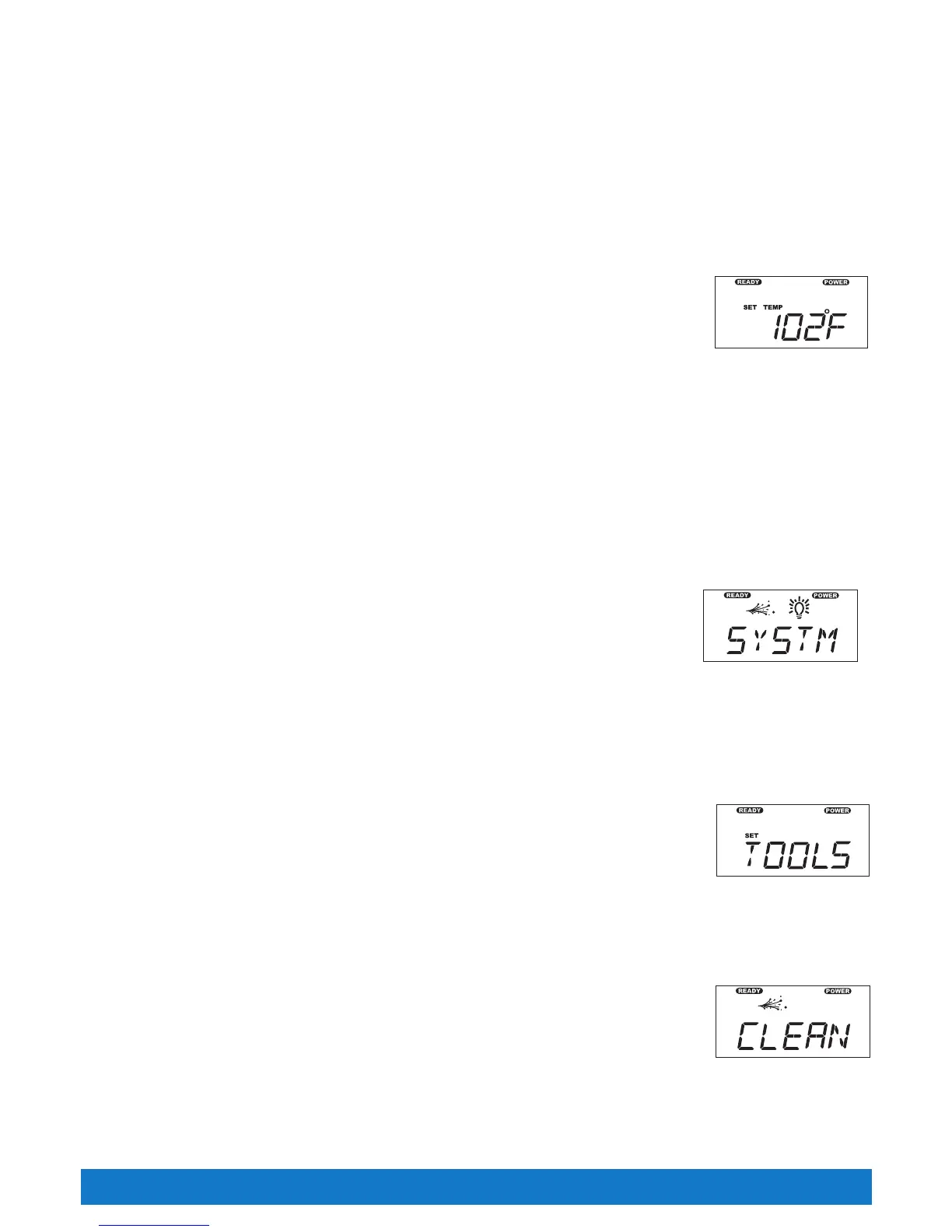 Thecontrolpanelconsistsoffourmainmenus.Thesemenusare;SetTemperature,System,Lite+andTools.TheLite+menuwillonlyappearif