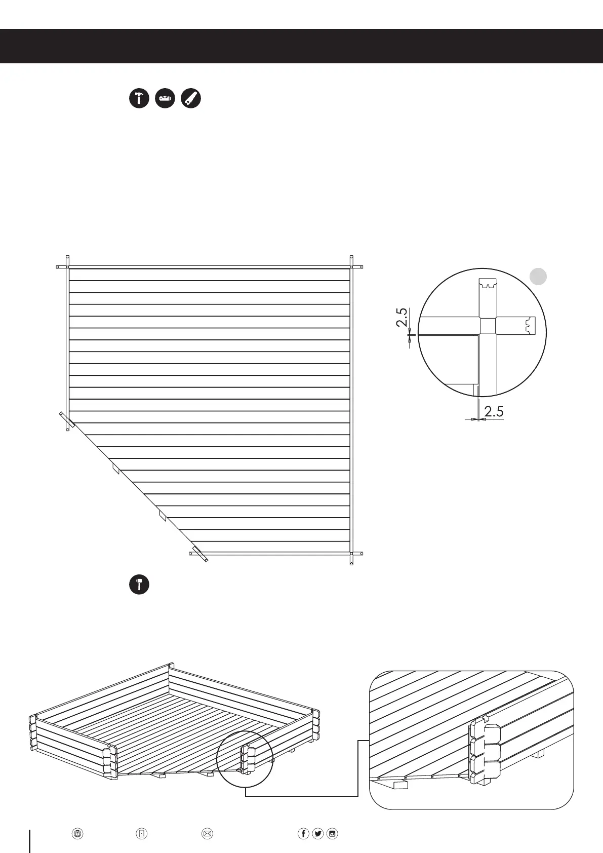 • Usingconstructdiagramasaguide,begintobuildupthewallsbyinterlockingthelogslayerbylayerunl