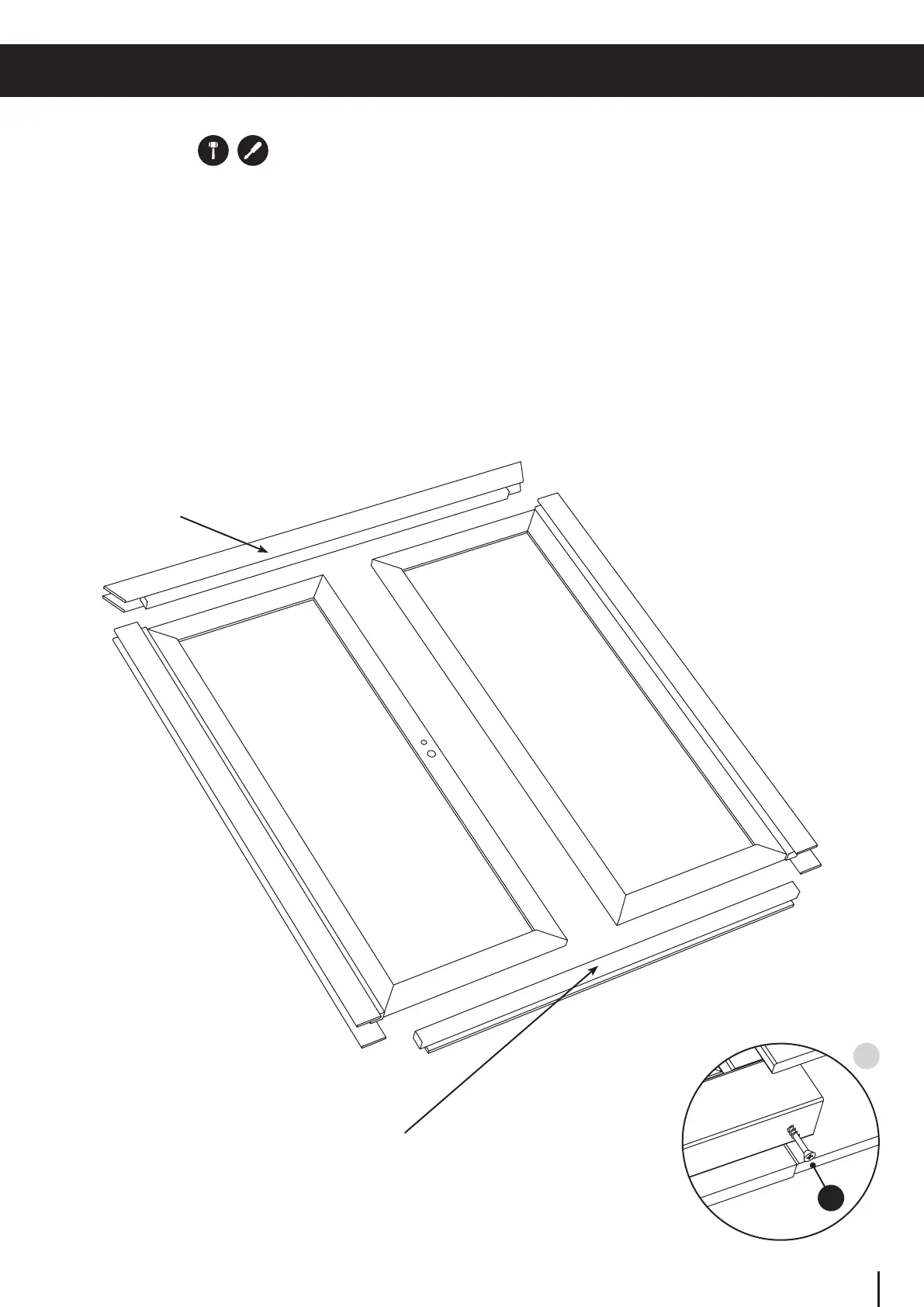• Arrangethedoorframingontoarmandlevelsurface,withhingestotheground.Slotthedoorsill(base)