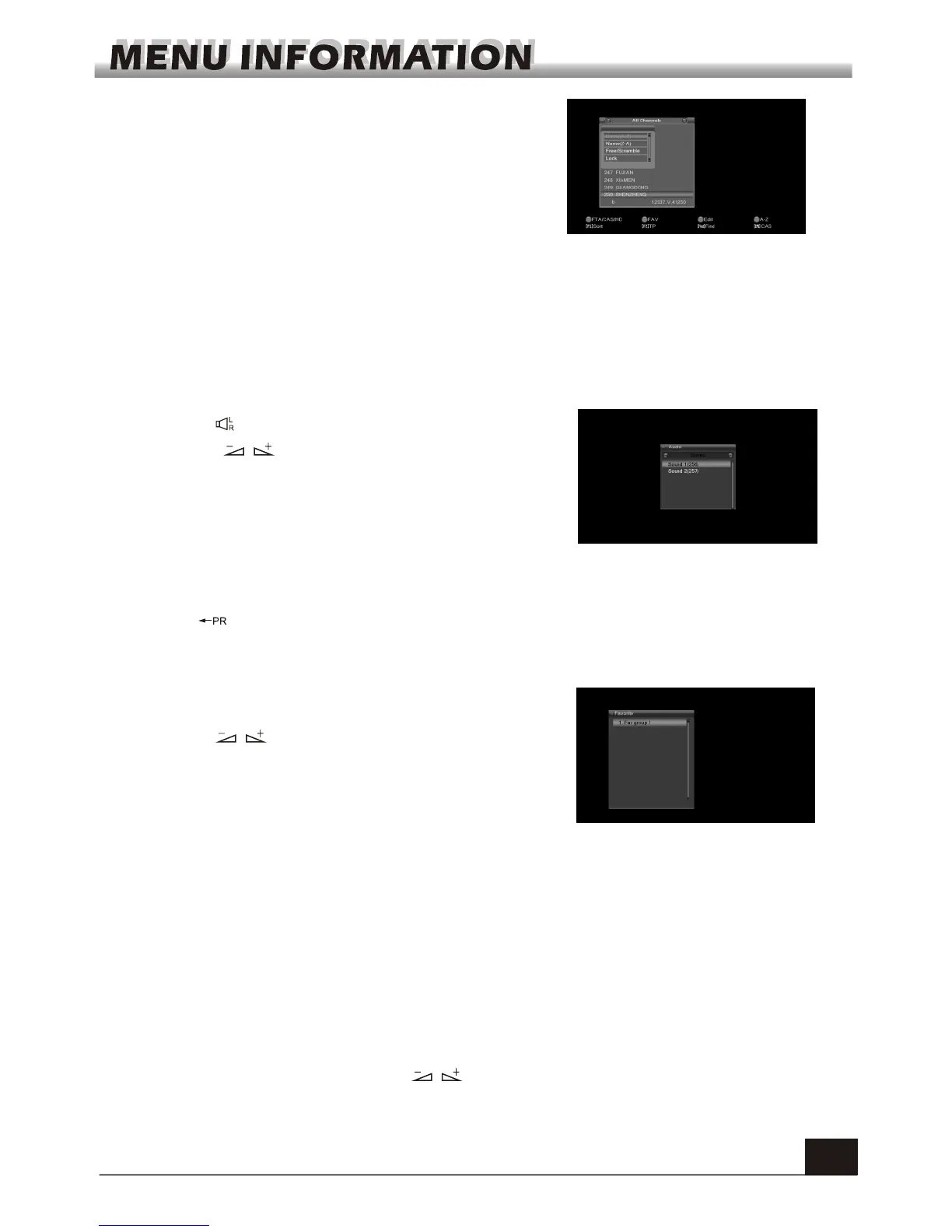 Press F2 key to pop up TP list, press FIND key to pop up FIND window, press EPG key to