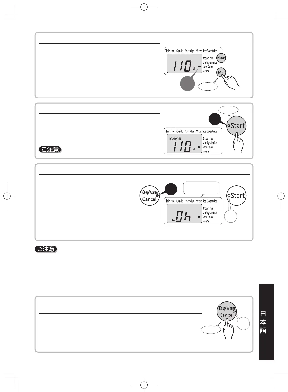* 料理によっては、保温を続けると風味が落ちてくる場合があるので注意