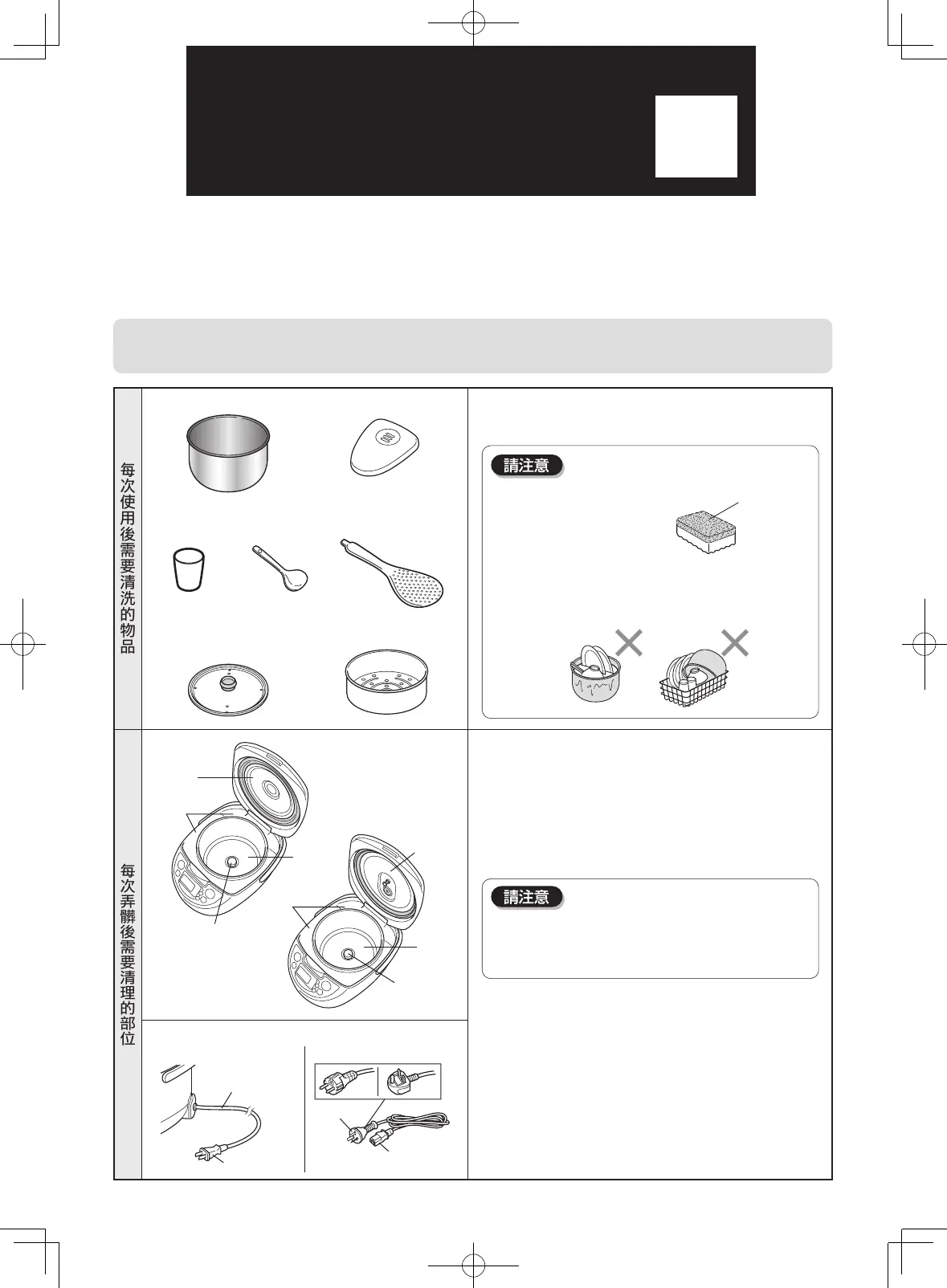 Tiger JBA-A10S - 8 保養方法; 每次使用後需要清洗的物品; 每次弄髒後需要清理的部位
