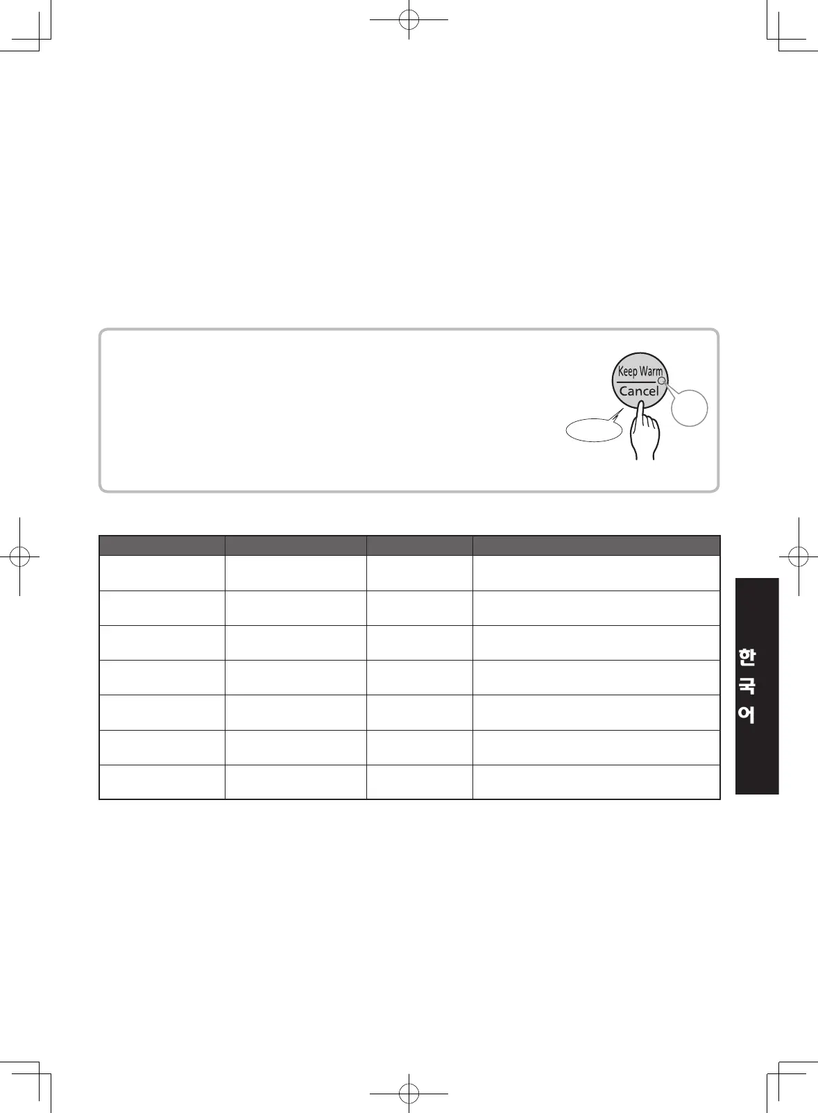 ●음식이완전히조리되지않은경우찜시간을추가하기전에[Cancel]키를누르지마십시오.그럴경우이기