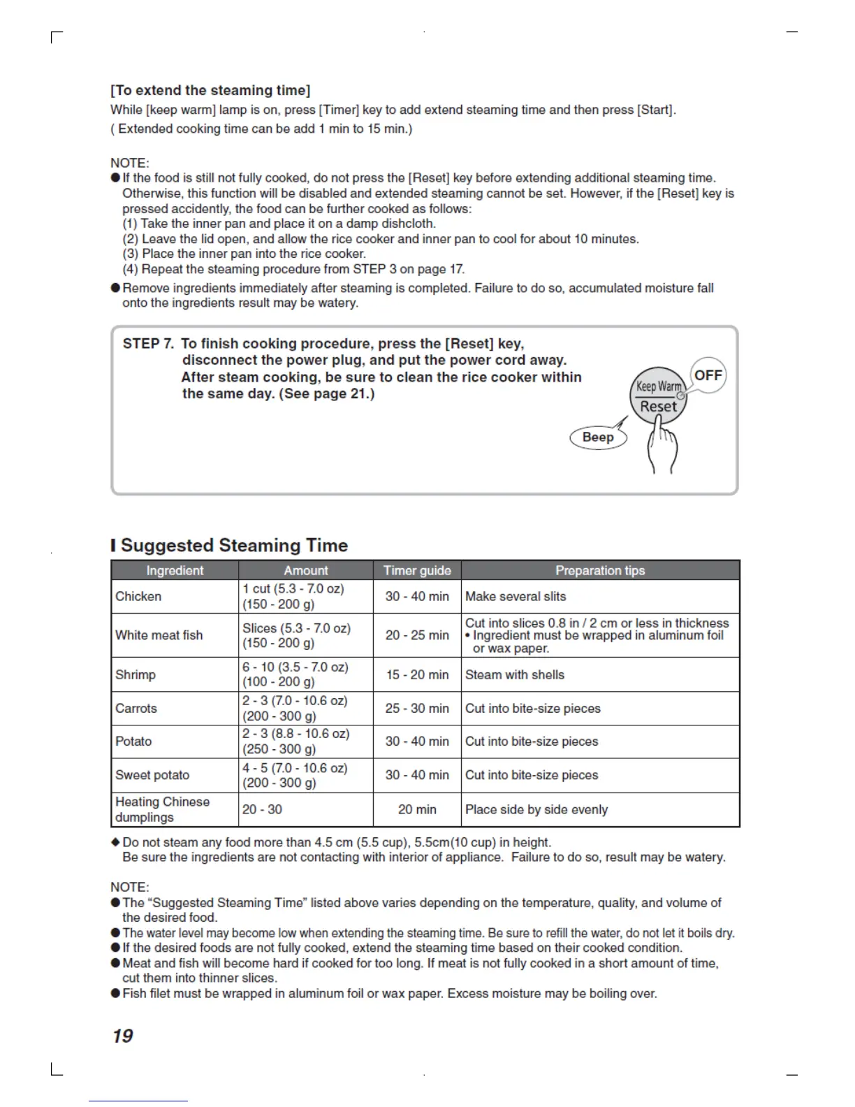 Tiger JBA-B10U - Suggested Steaming Time; To Extend the Steaming Time