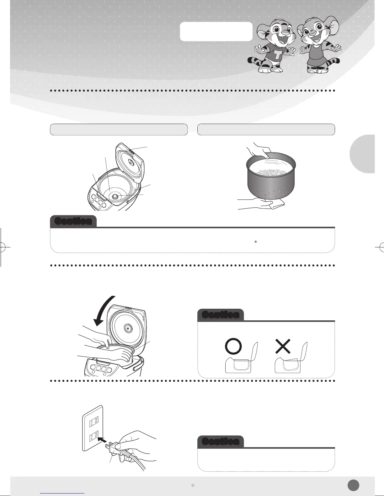 1. Set the inner pan securely so that it is not tilted.